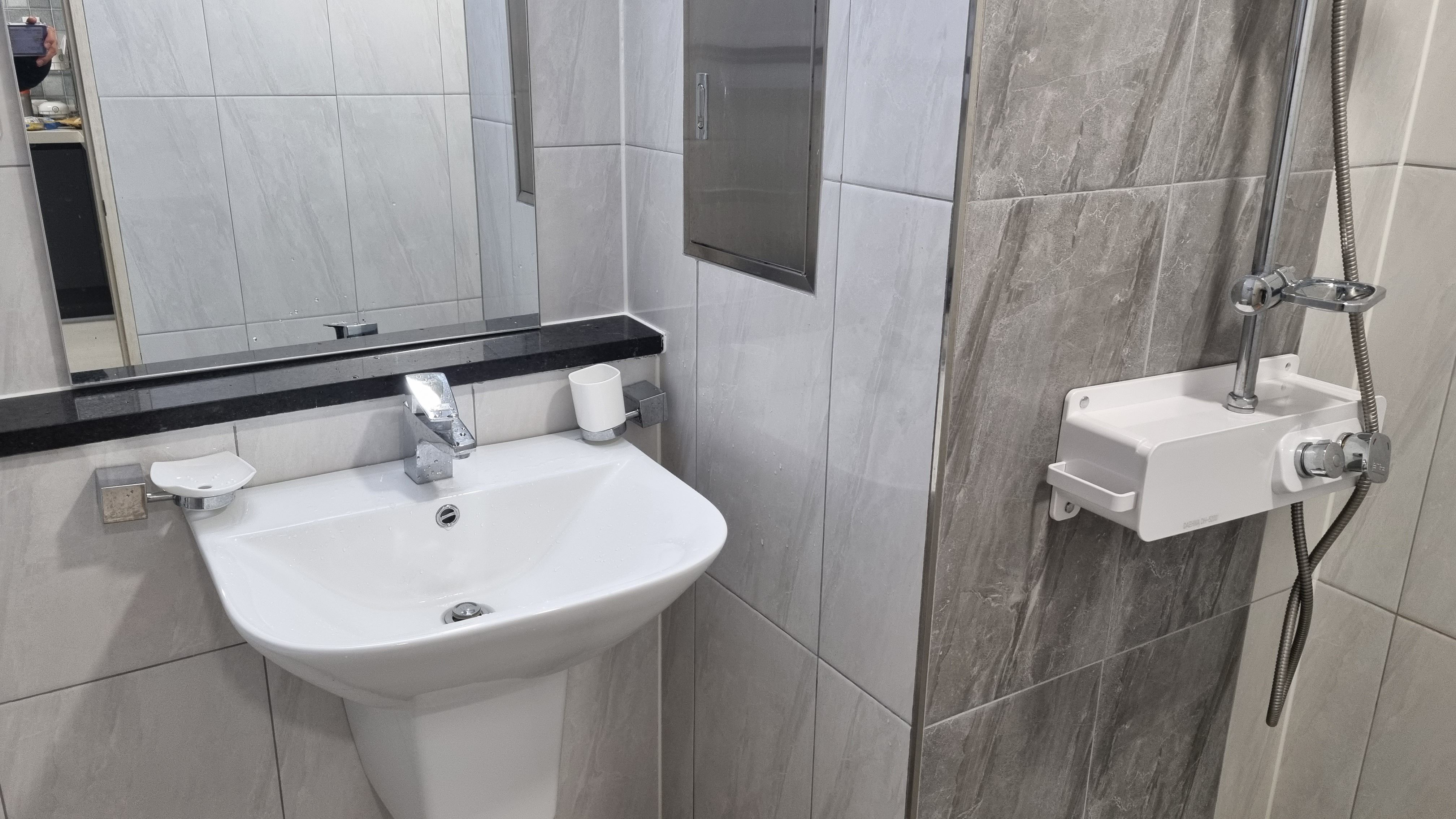 어떤분들에게 아주 민감할 화장실은 신축이니 당연히 깔끔하고 샤워시설도 잘되어있는데 구축과 달리 해바라기수전까지 갖춰져있죠. 뜨거운물 잘나오고 세면용품은 당연히 각자 준비해 주시고 화장실 휴지는 비치되어있지만 질은 별로라 민감한분들은 따로 준비하시길..