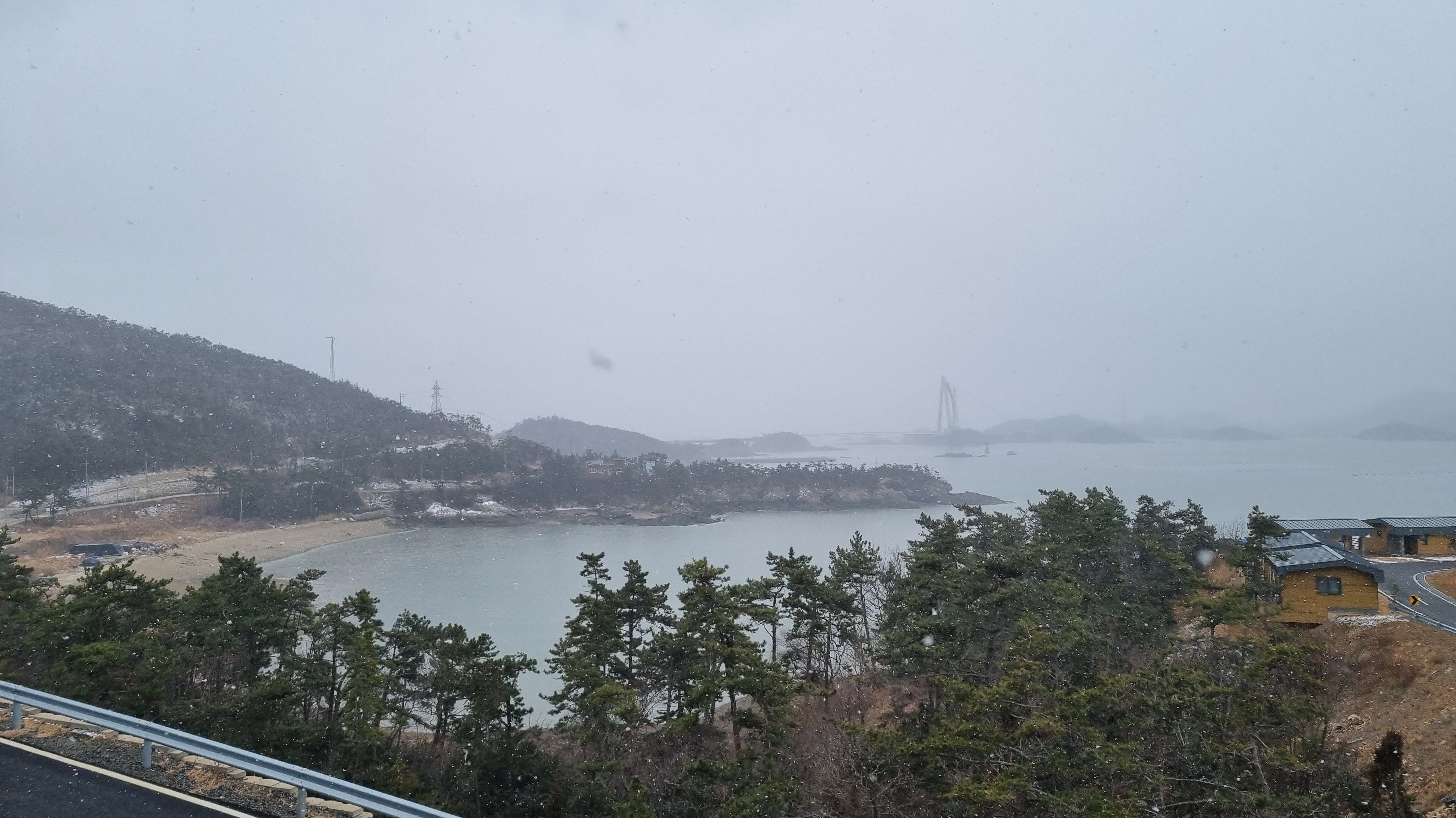 국립신시도자연휴양림을 가는길은 겨울철에는 다소 위험하더군요. 사진처럼 시멘트포장길인데 바로옆이 바닷가 낭떠러지라 그날 저녁 폭설이 내리는 바람에 제설작업도 제대로 안되고 빠져나오는데 애좀 먹었었죠. 이번달에 가시는분들도 스노우체인 준비하는게 좋겠네요.