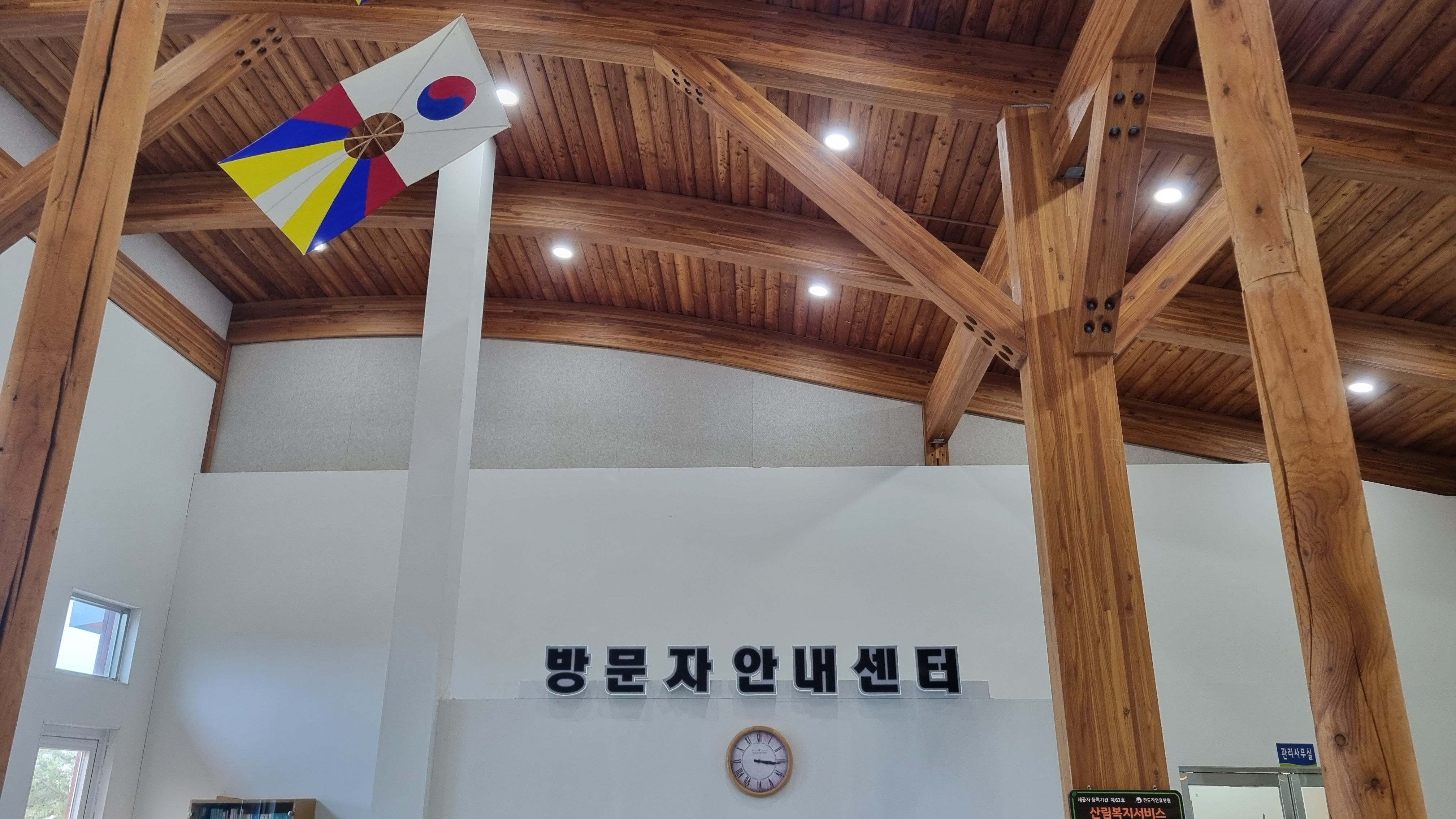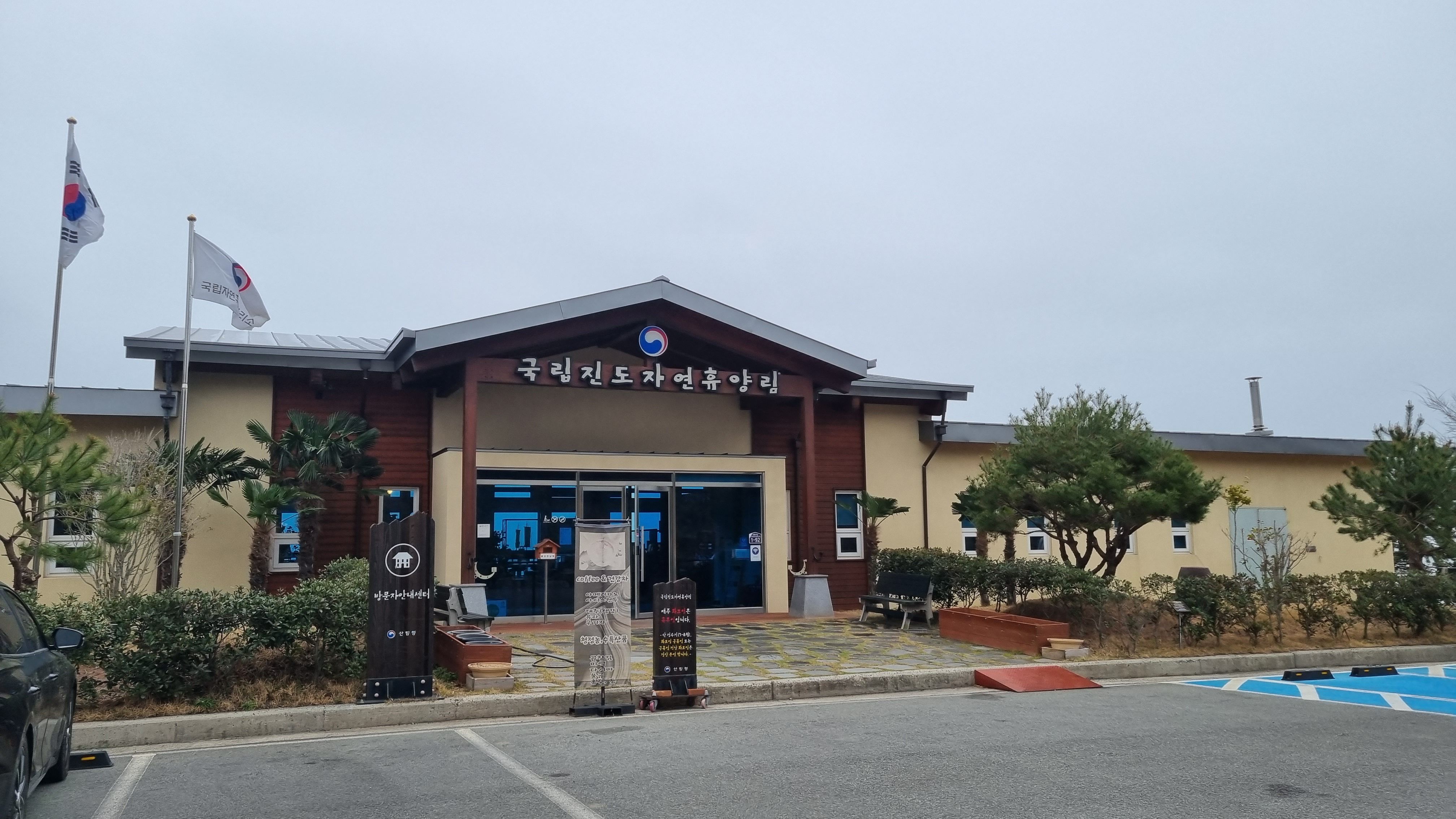 방문자안내센터 앞에 차를 세우고 체크인을 하면 되는데요, 오늘소개하는 진도자연휴양림돈나무는 건물 우측으로 있답니다.