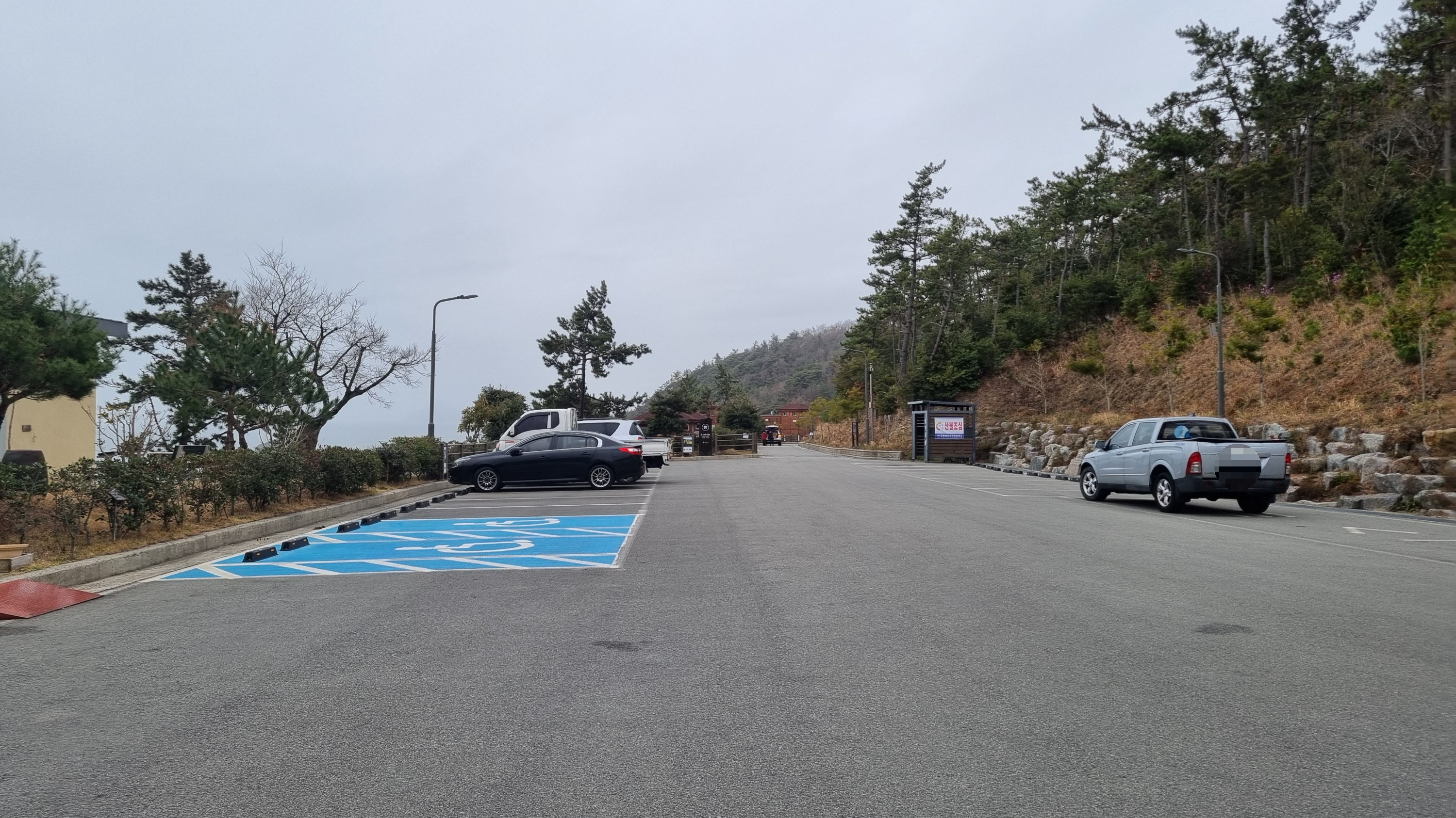 주차는 따로 구획이 없어서 건물 반대편에 일렬로 주차를 하시면되고 차량을 여러대 가져오셨다면 방문센터앞에 주차장에 주차하실것을 권장드립니다. 늦게도착하는 숲속의집 방문자들을 배려하셔야죠.