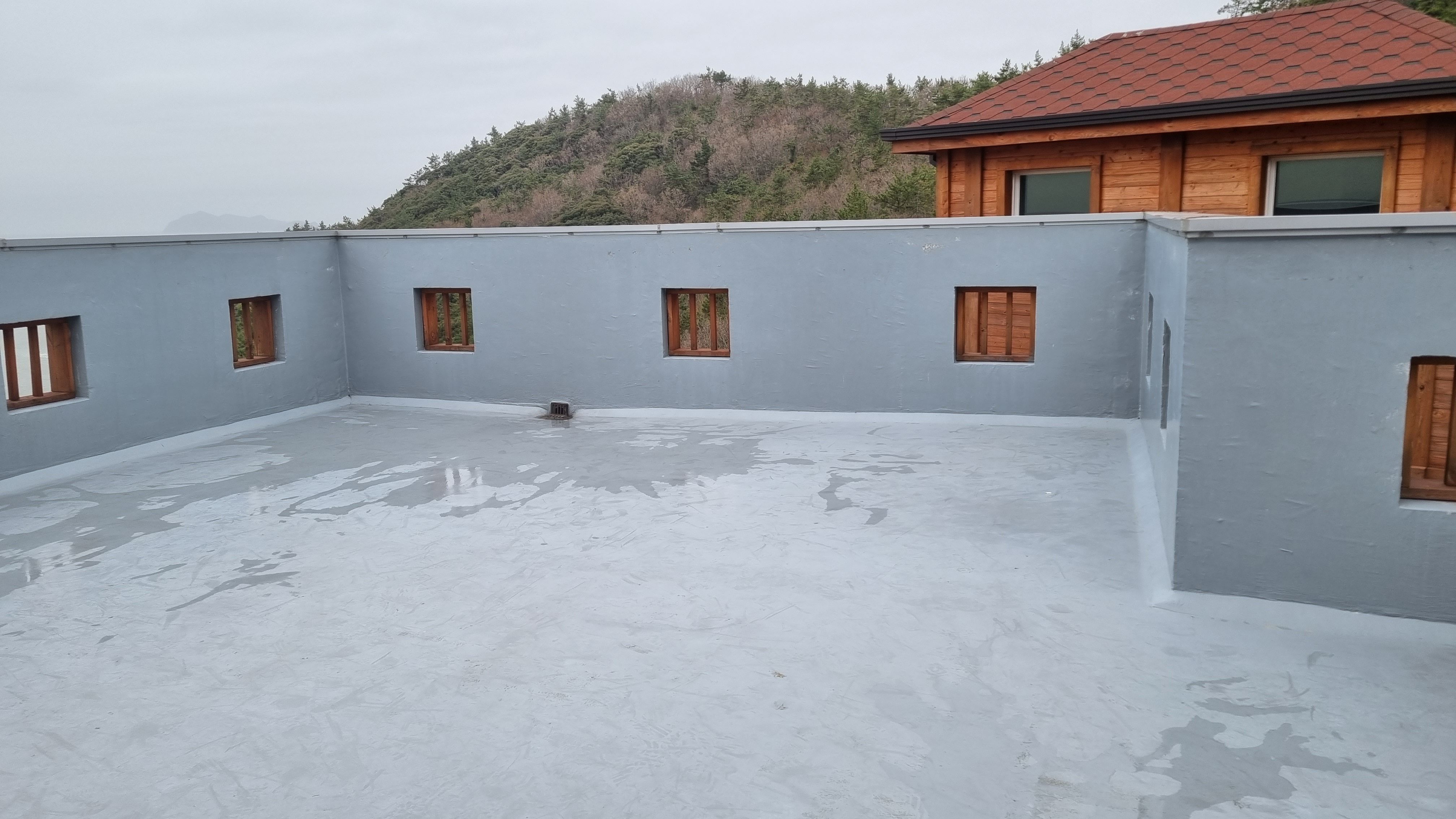 위로오르는 계단이 있는데 가보면 마치 건물의 옥상처럼 보이는데 이곳과 주차장과 같은 높이이죠. 이곳에서 바베큐를 할 수있는것도 아니고 사실 쓸모는 별로 없어 보였어요. 차라리 밖이 보이는 난간에 그늘을 설치했다면 루프탑형태로 더 인기가 있었을텐데 하는 아쉬움이 남네요.