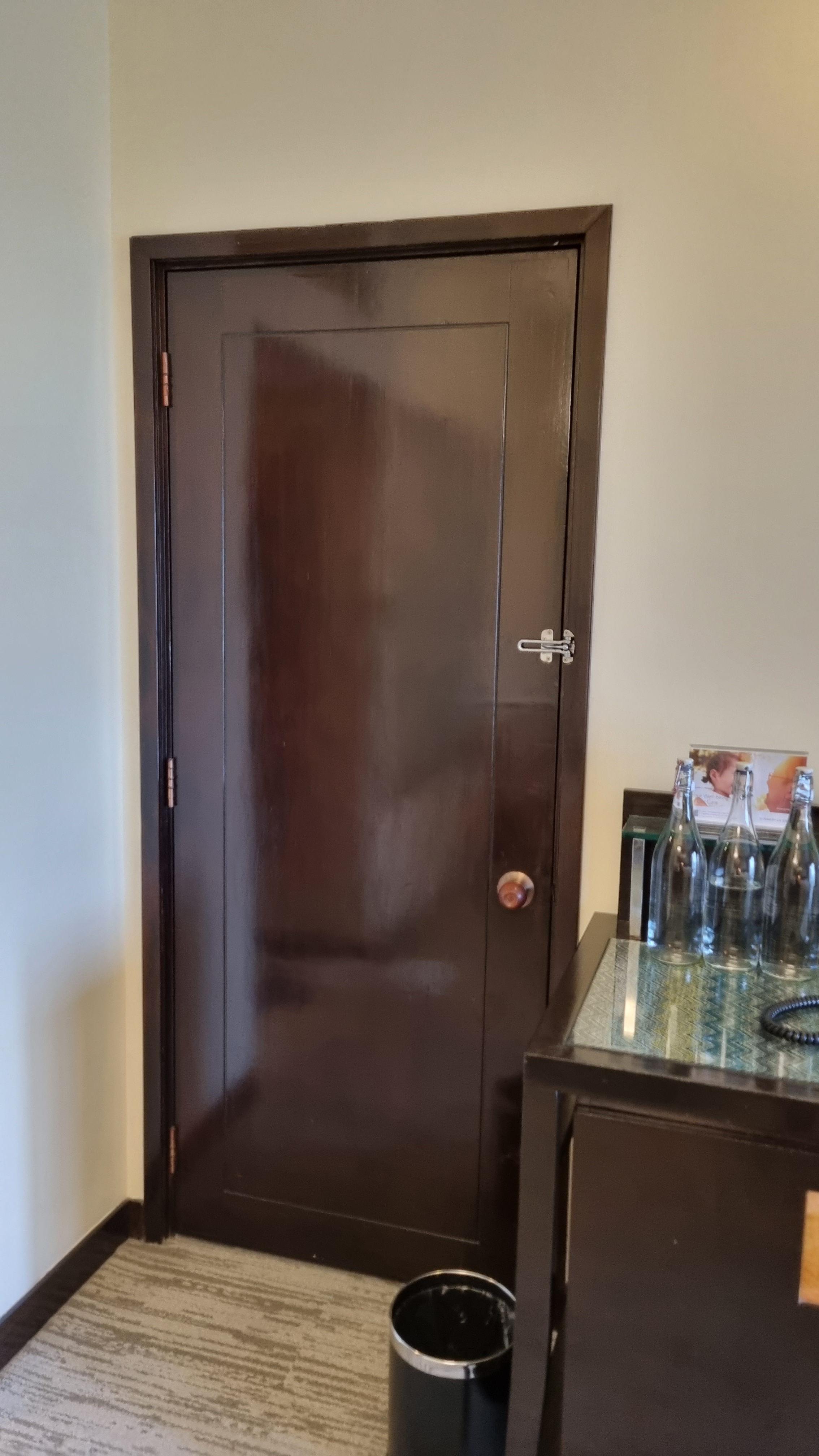 가족을 층이 다르게 배정한것도 열받는데 이건 또 뭔가! 세상에 옆방과 문이있고 잠금장치도 없고 열어보니 진짜 옆방과 통하는문이었어요. 열어보니 스폰지하나 덭대놓은형태로 방음이 당연히 전혀 안되죠. 옆방에 고등학생으로 보이는 형제가 쓰는 방갔었는데 말소리가 다 들릴 정도니 이런곳을 신혼부부나 연인이 배정 받은다면? 정말 뜨악할 일이죠.