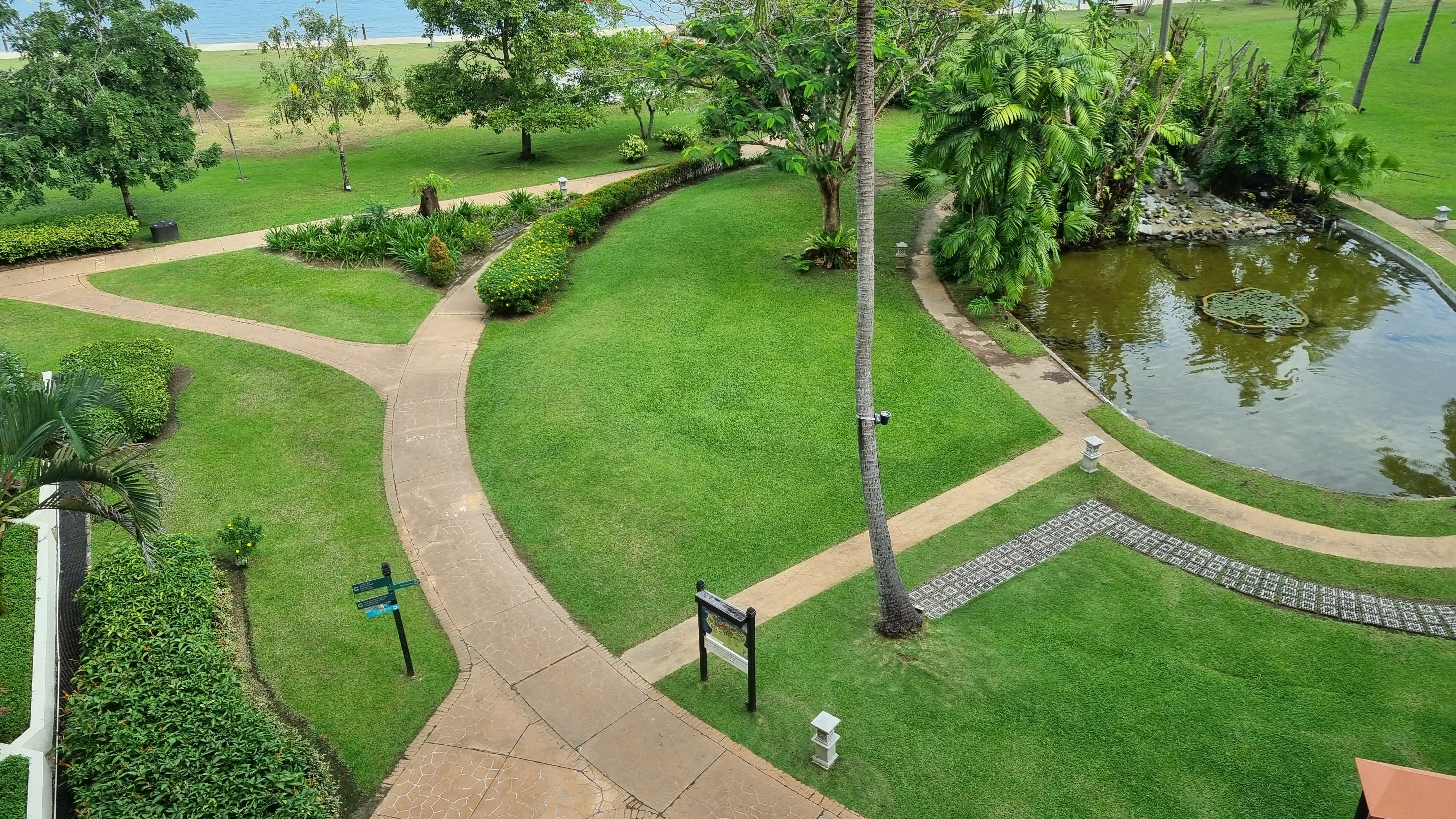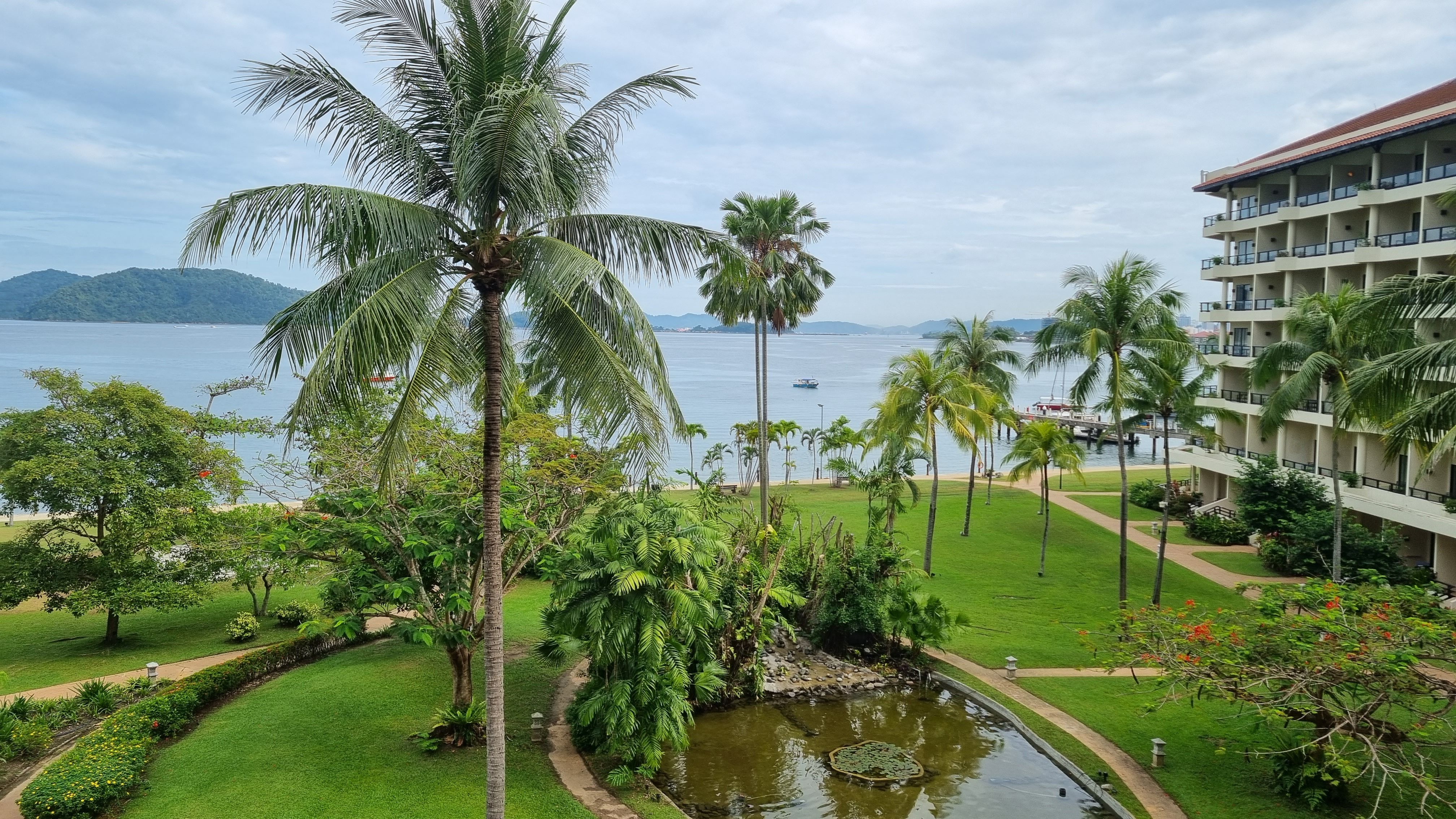 이곳 리조트는 앞쪽으로는 야자수와 연못이 있는 바다가 보이는 정원이고 뒷쪽은 마치 정글과 같은 나무들이 많은 또다른 매력을 가진 코타키나발루리조트 이네요. 저도 4층객실 배정만 아니었더라도 이곳 리조트에 대해 만족했을 거에요.