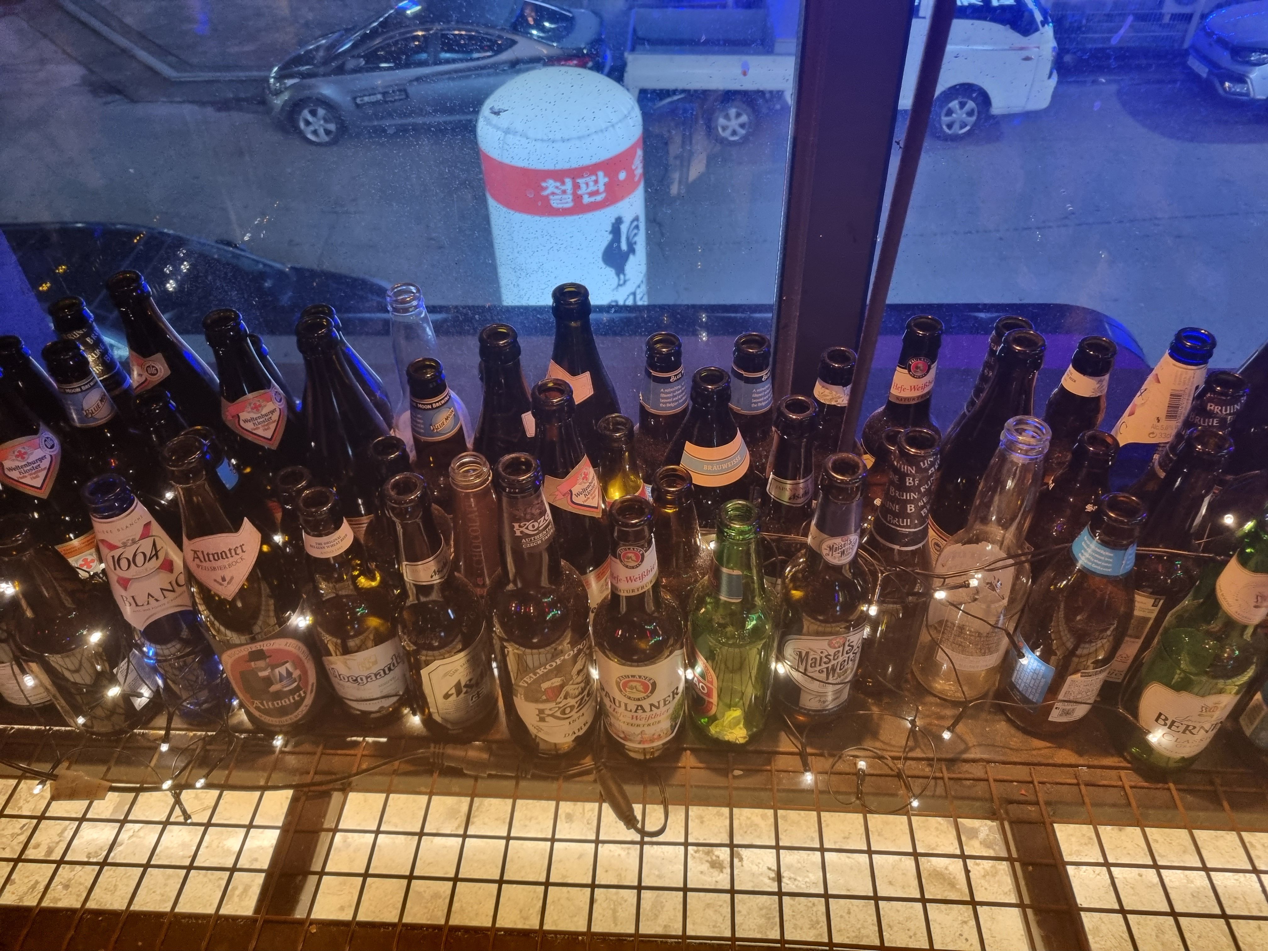 창가에는 손님들이 마신 다양한 맥주병들을 전시해 놓았네요. 이걸보면 어떤맥주를 먹을까 생각도 해봤죠.