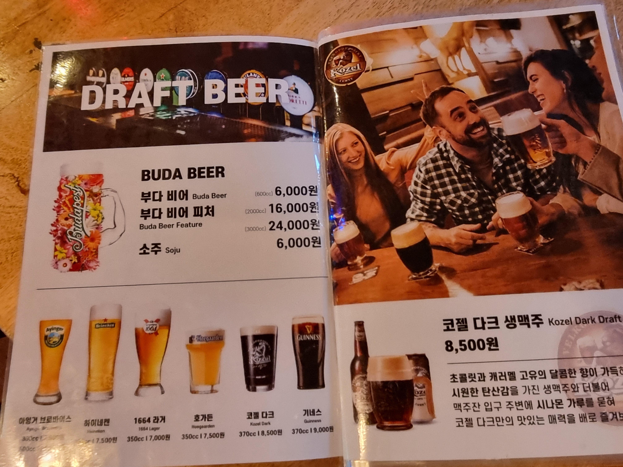 여러가지 맥주가있는데 부다비어 해서 헝가리 맥주? 인줄 알았는데 그냥 우리나라 생맥주라네요 ㅎ