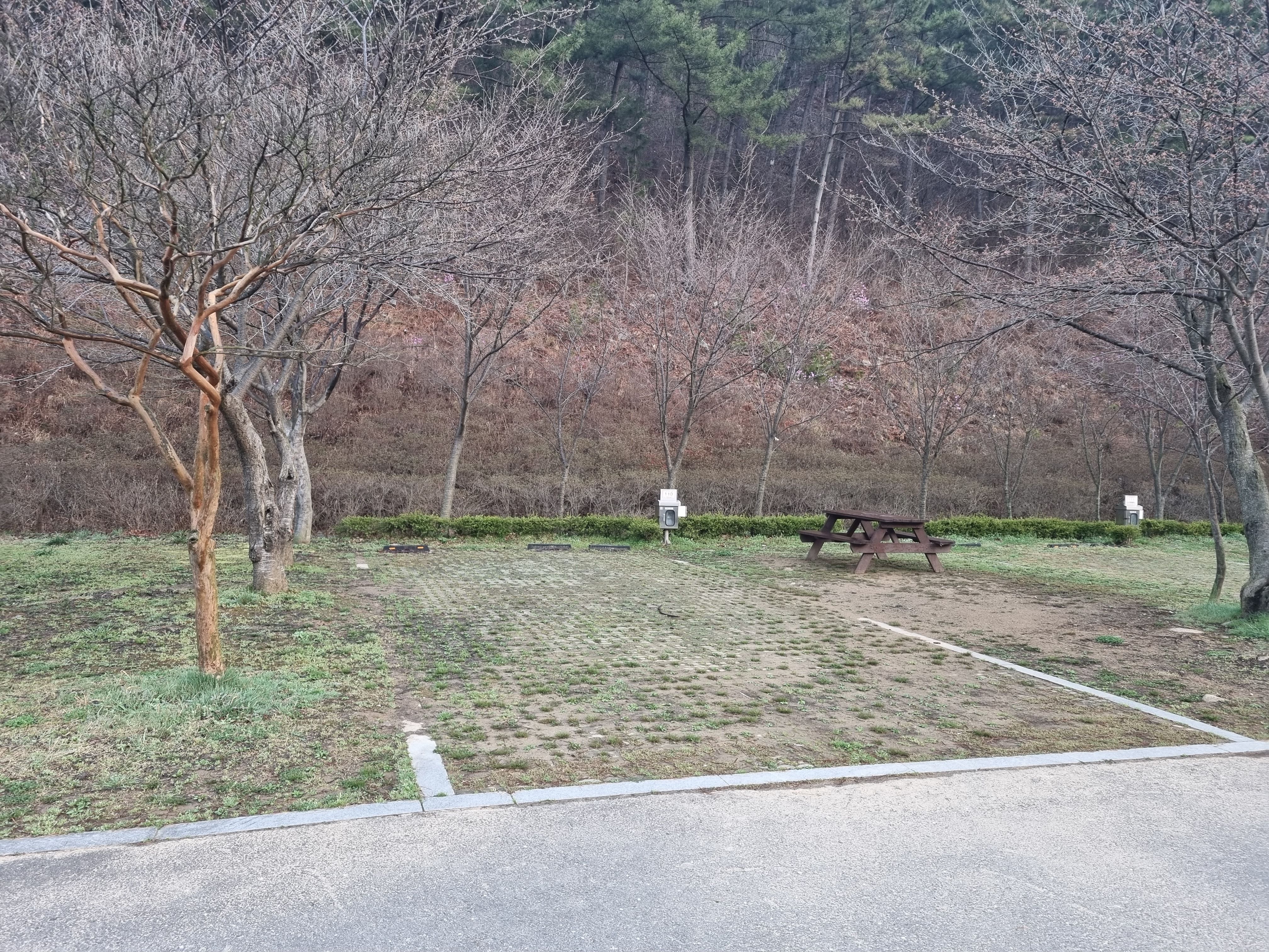 1야영장 사이트는 대다수 비슷비슷해서 어디를 예약하든 상관없지만 계절별 나무가 있고 없고 차이에 따라 인기도는 조금 달라집니다. 104번사이트 모습입니다.