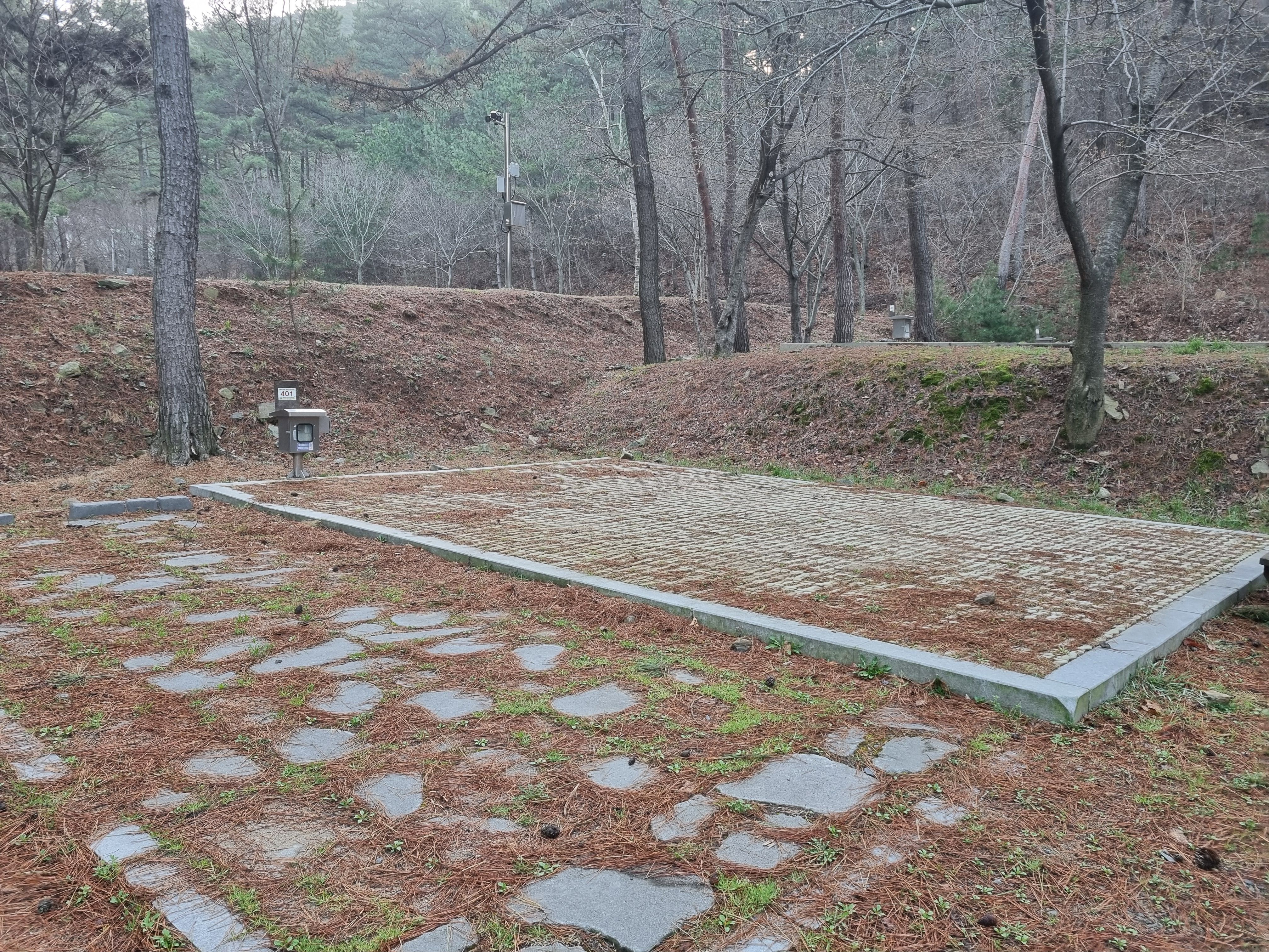 이곳구역은 총6개 사이트가 있는 희리산 4 야영장 데크는 길에서 조금 들어가 소나무아래 401번 사이트가 있습니다.