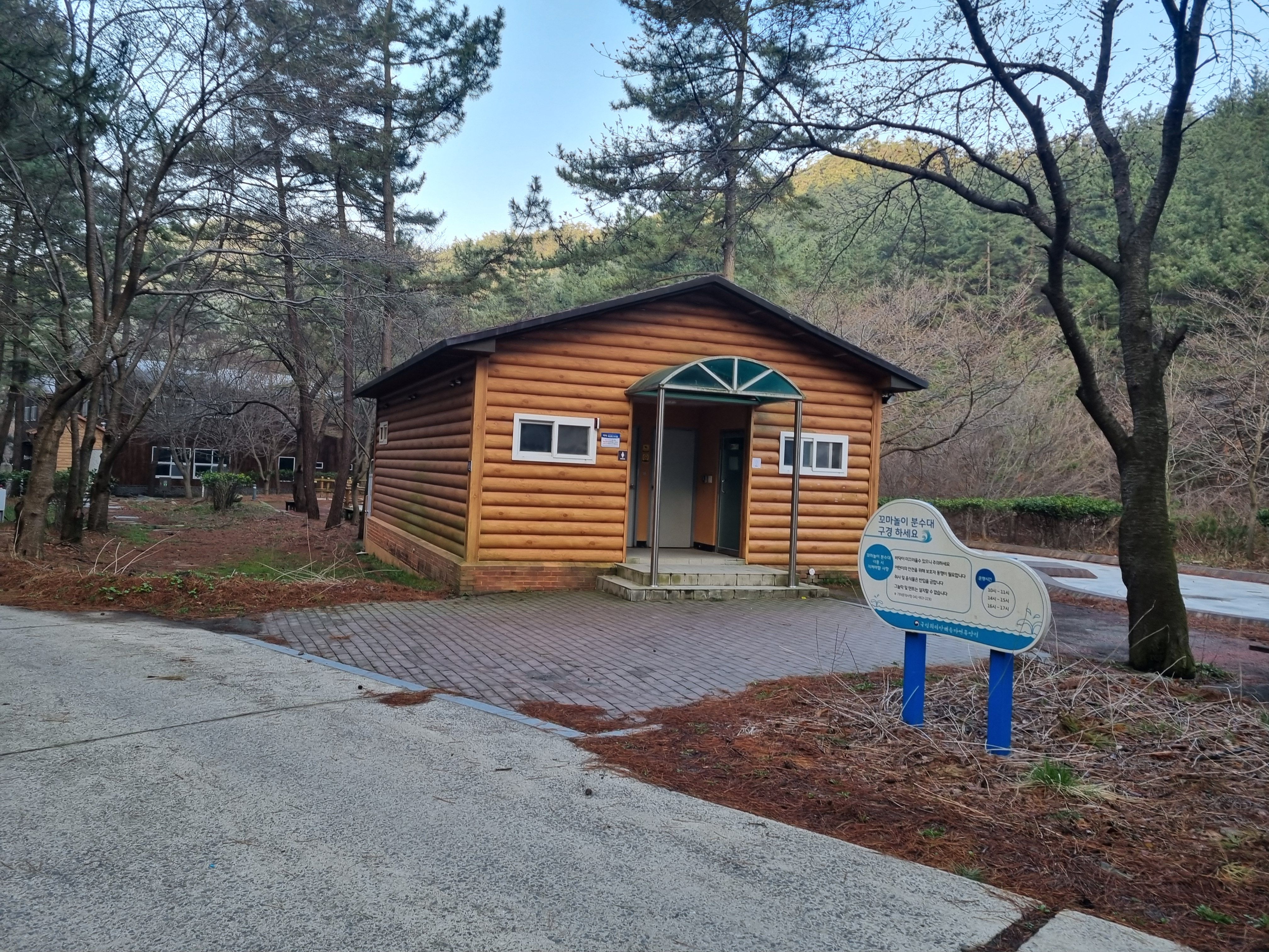 희리산캠핑카 야영장 편의시설은 가까이 화장실이 있어 편리하고 아래 내려가면 산림문화 체험관도 있고 분수대도 있어서 아이들이 좋아할만합니다. 개수대나 샤워시설은 위쪽으로 이동해야해서 이런 시설들이 더 가까운곳을 선호한다면 다음 구역인 407~410번 사이트를 선택하는게 좋겠네요. 제가 방문했던 지난 3월에는 이곳을 운영하고 있지 않아서 촬영을 하지 않아 정보가 없습니다.