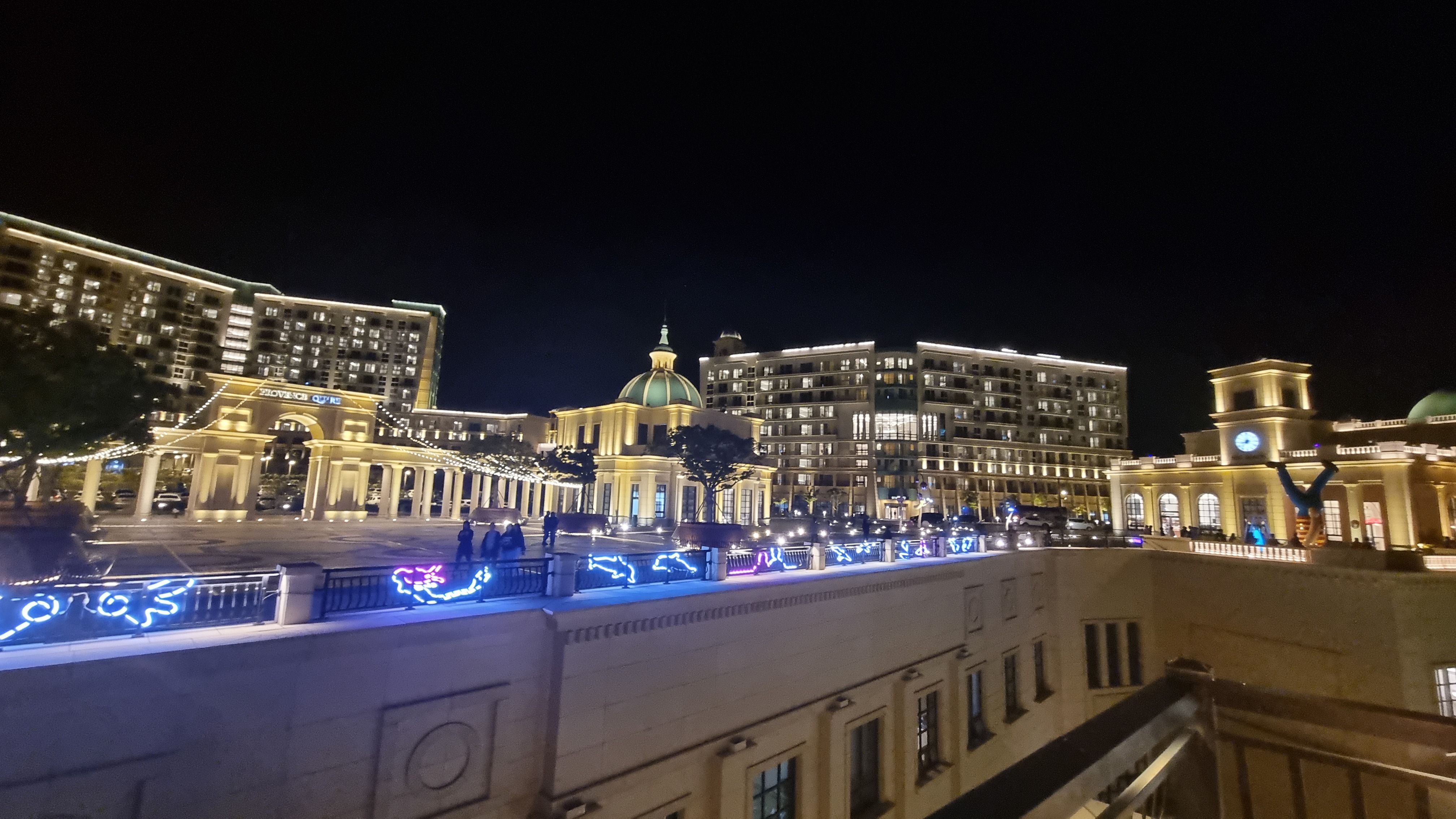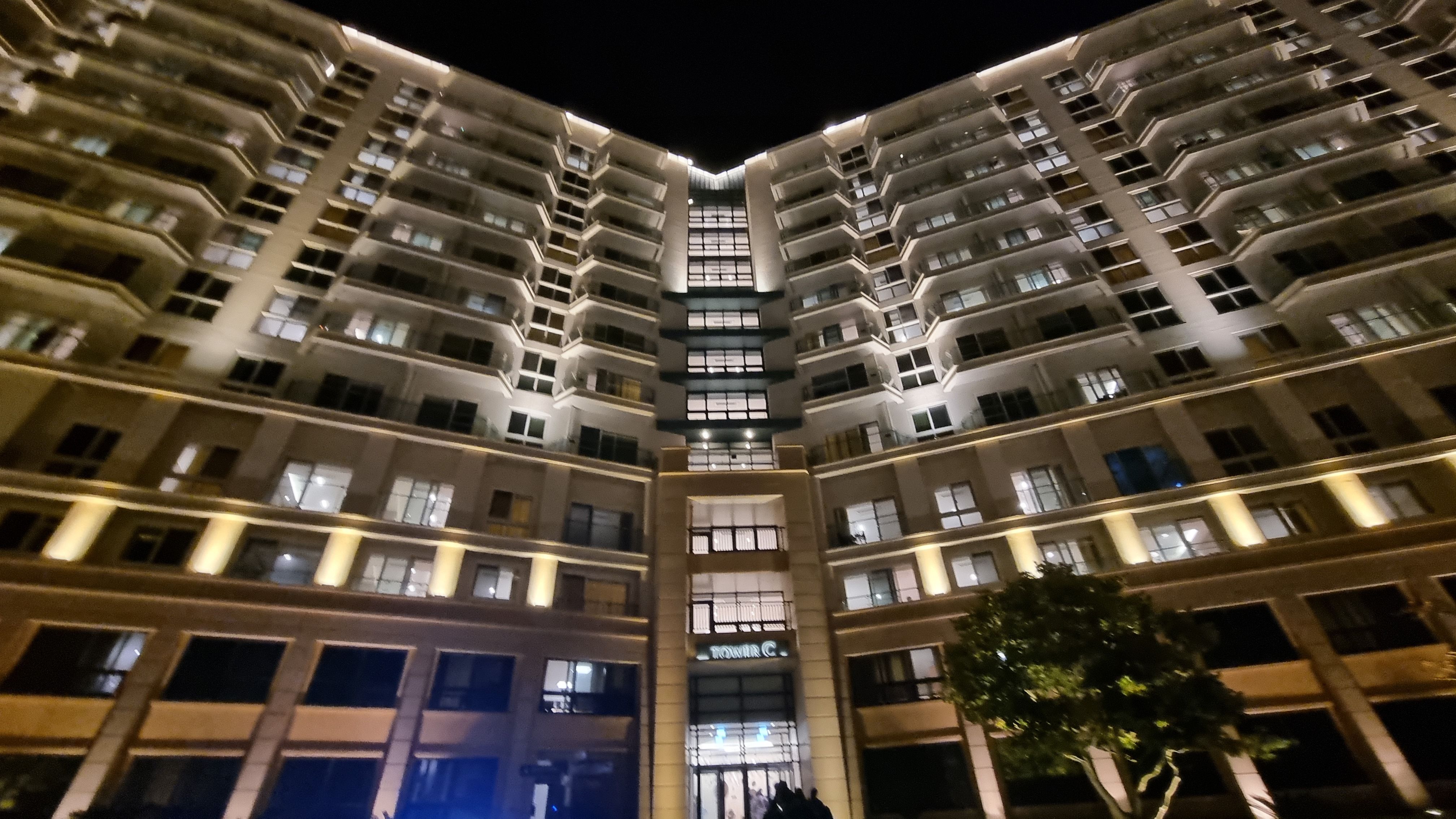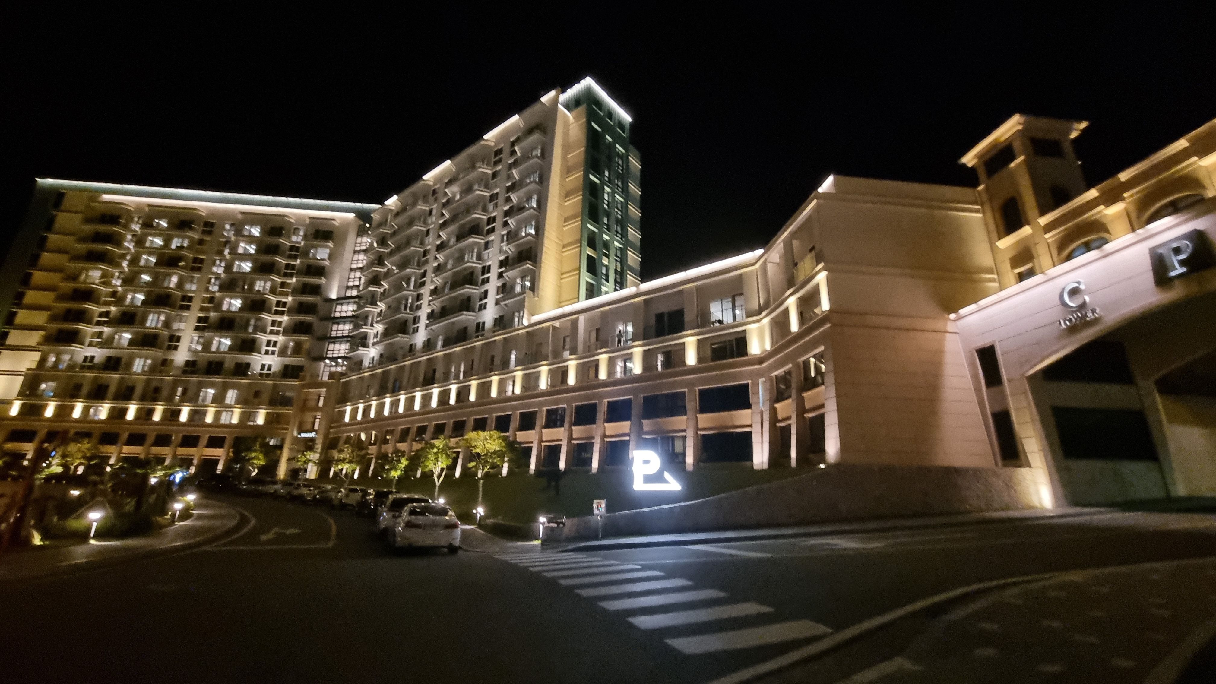 광장에서 바라본 최상단 TOWER C 건물도 화려한 불빛으로 야경을 밝혀줍니다.