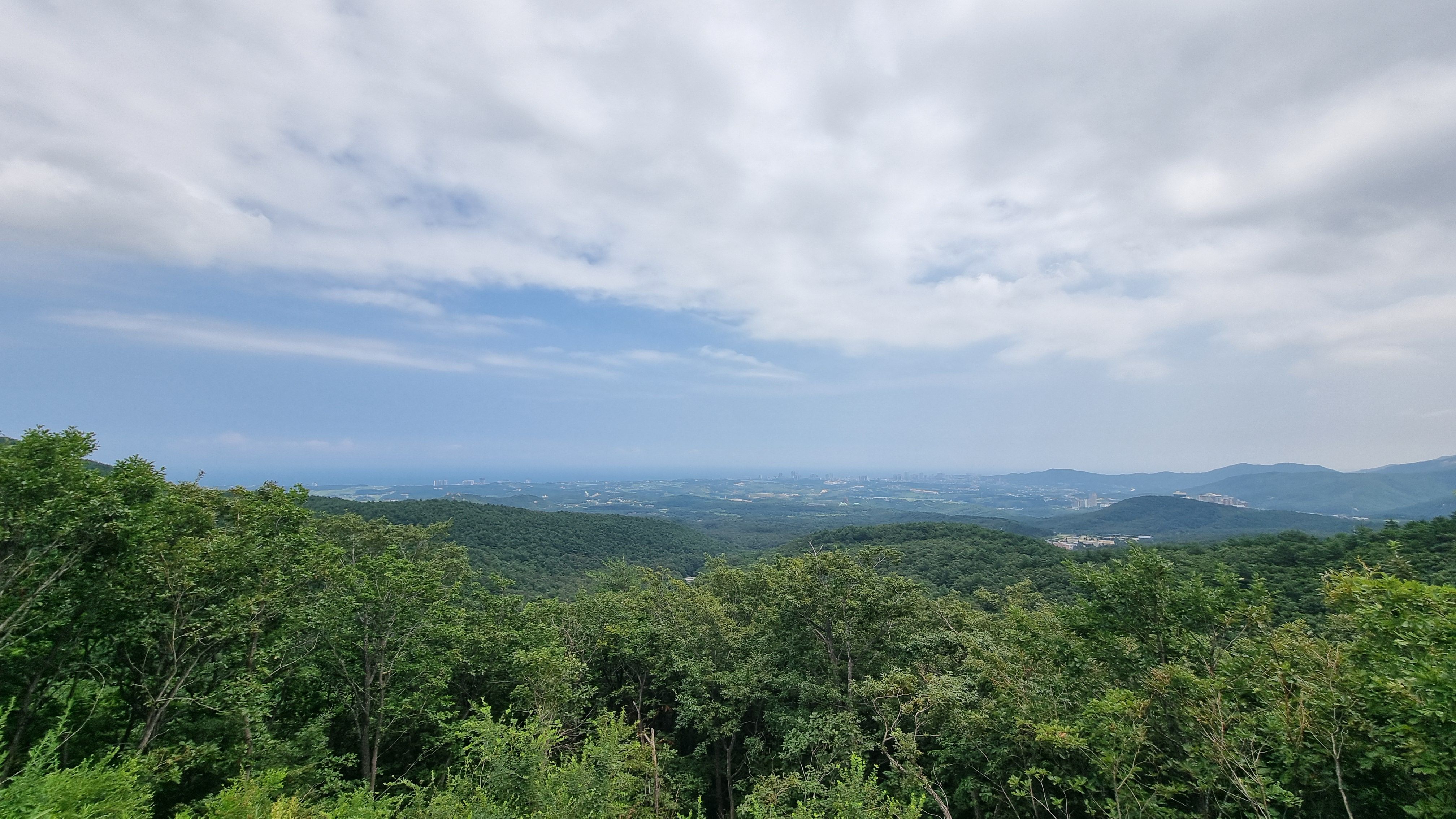 미륵전 앞에서 바라본 속초시내와 동해바다 전망입니다. 사진상으로는 잘 보이지는 않지만 전망이 진짜 끝내줘요. 이맛에 힘들게 여기를 오나봅니다.