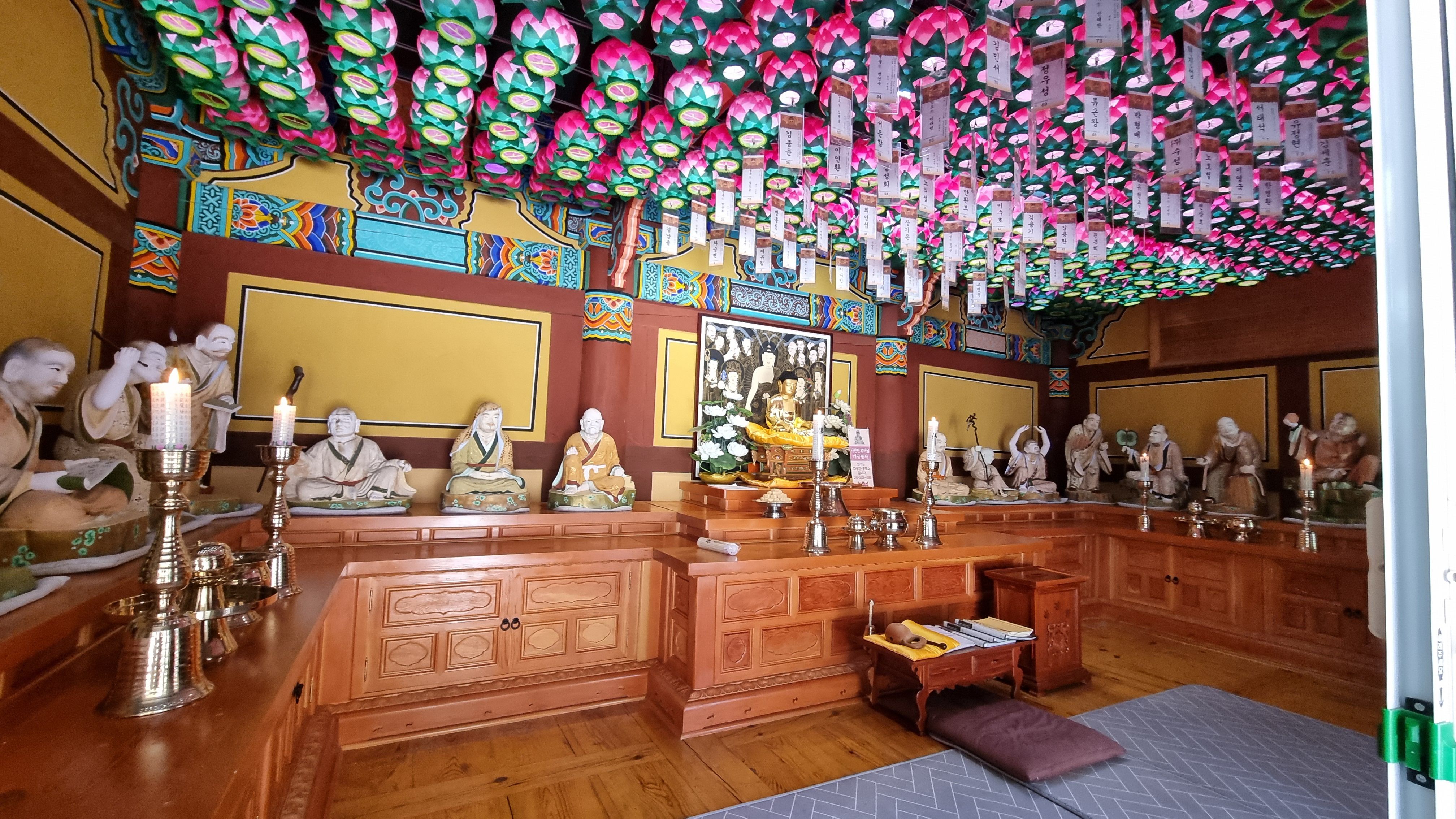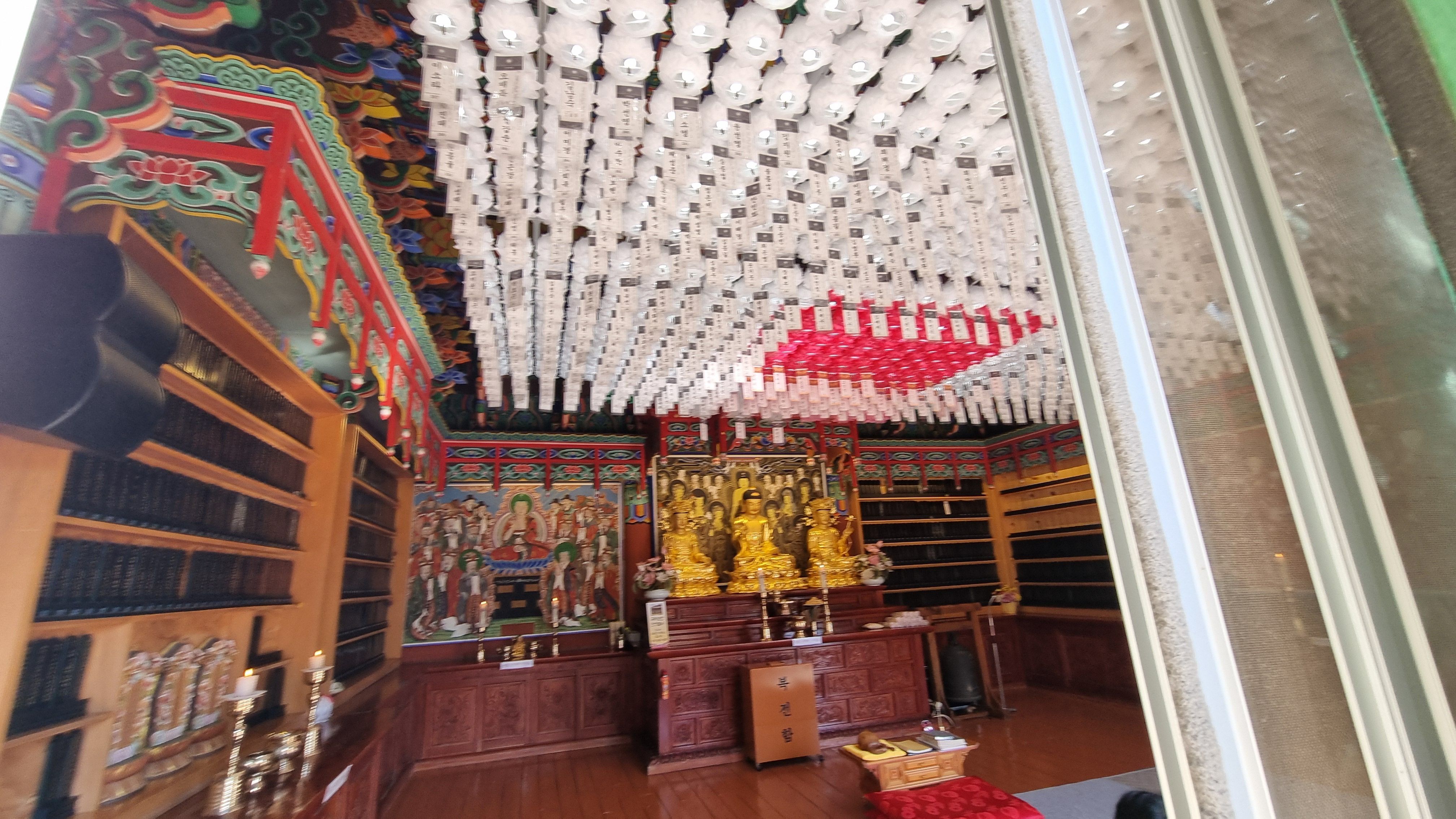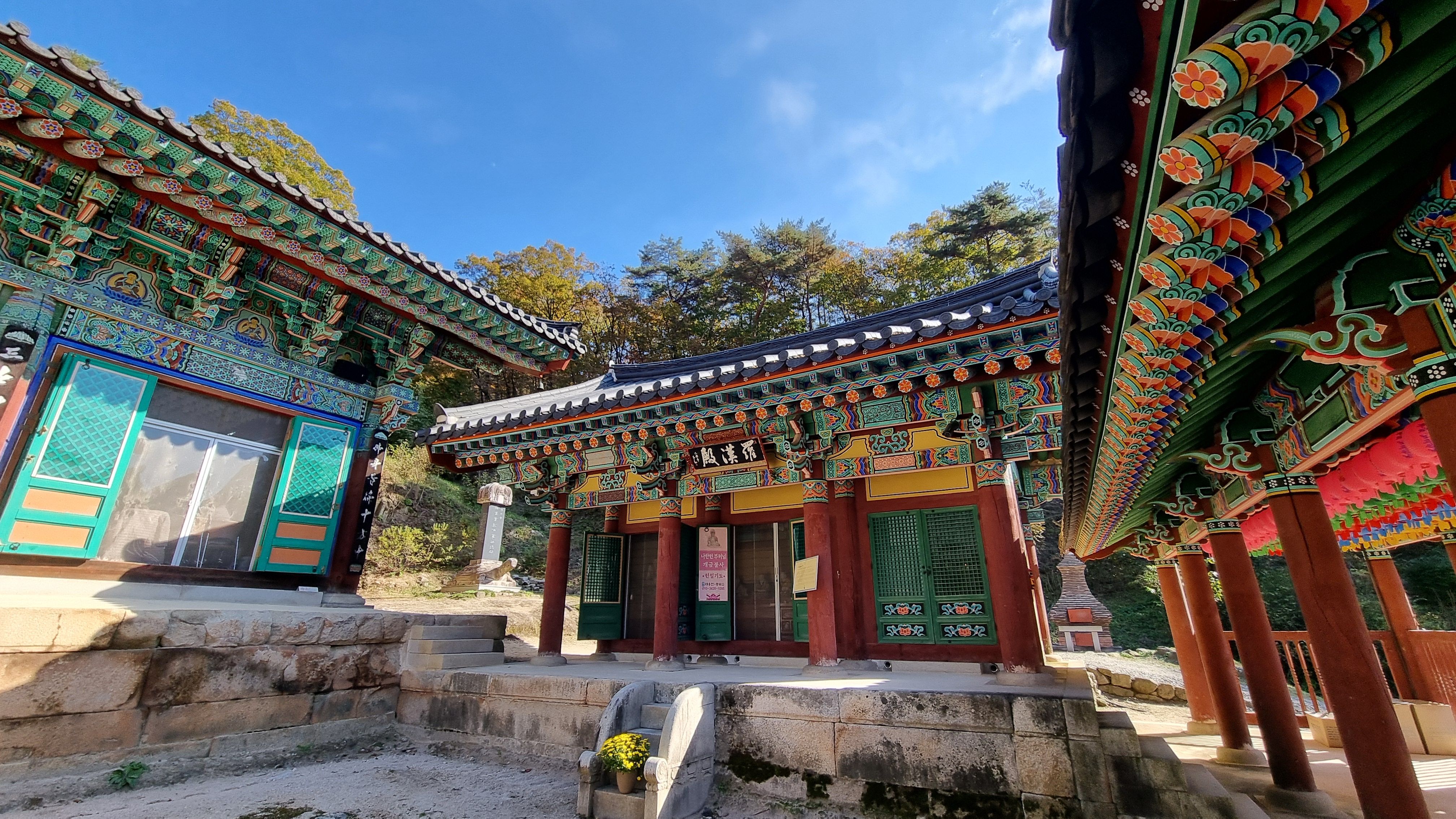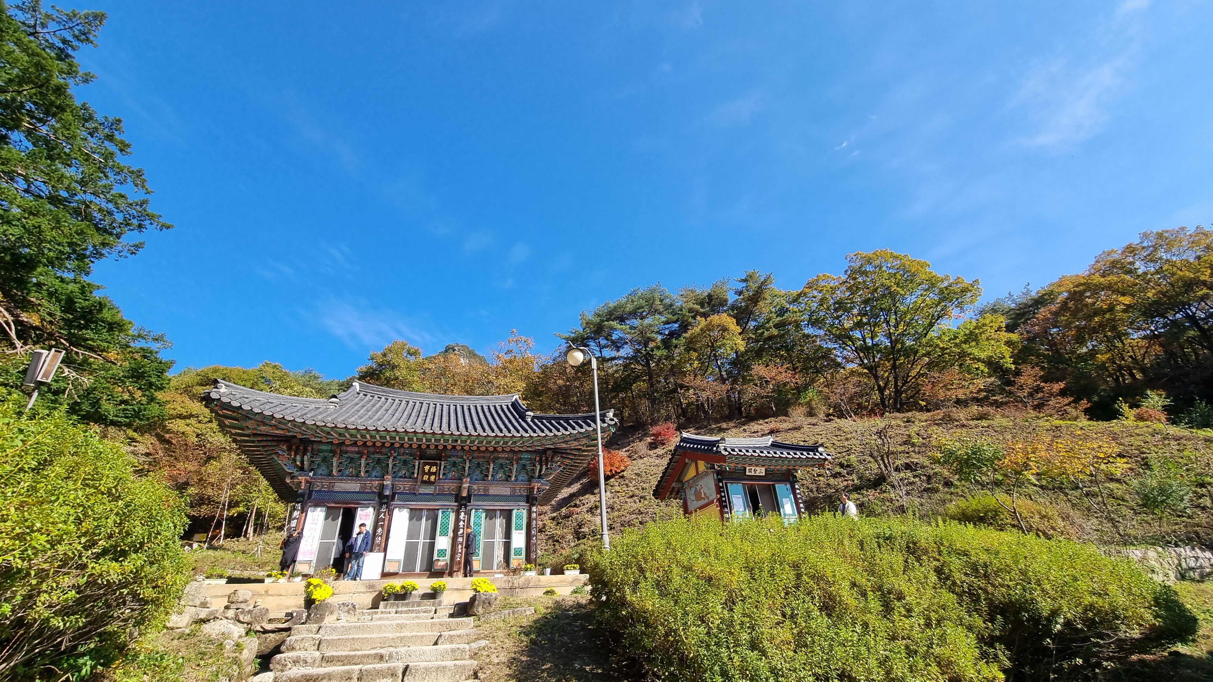 회전문을 지나 계단을 오르니 정면에 대웅전 죄우측에 나한전과 관음전이 한눈에 들어옵니다.