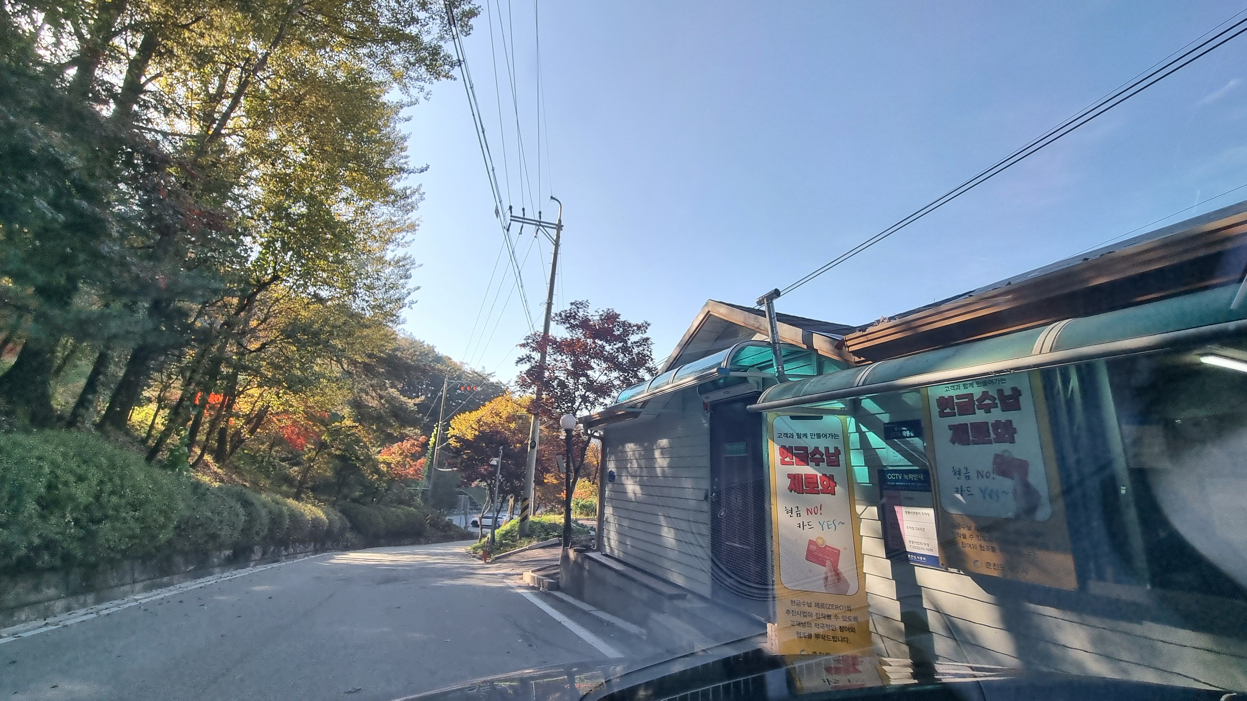구불구불 고개를 넘어갔는데 생뚱 맞은곳에 매표소가 나옵니다. 주차료를 받는데 25백원으로 기억되고 카드만 가능하네요.
