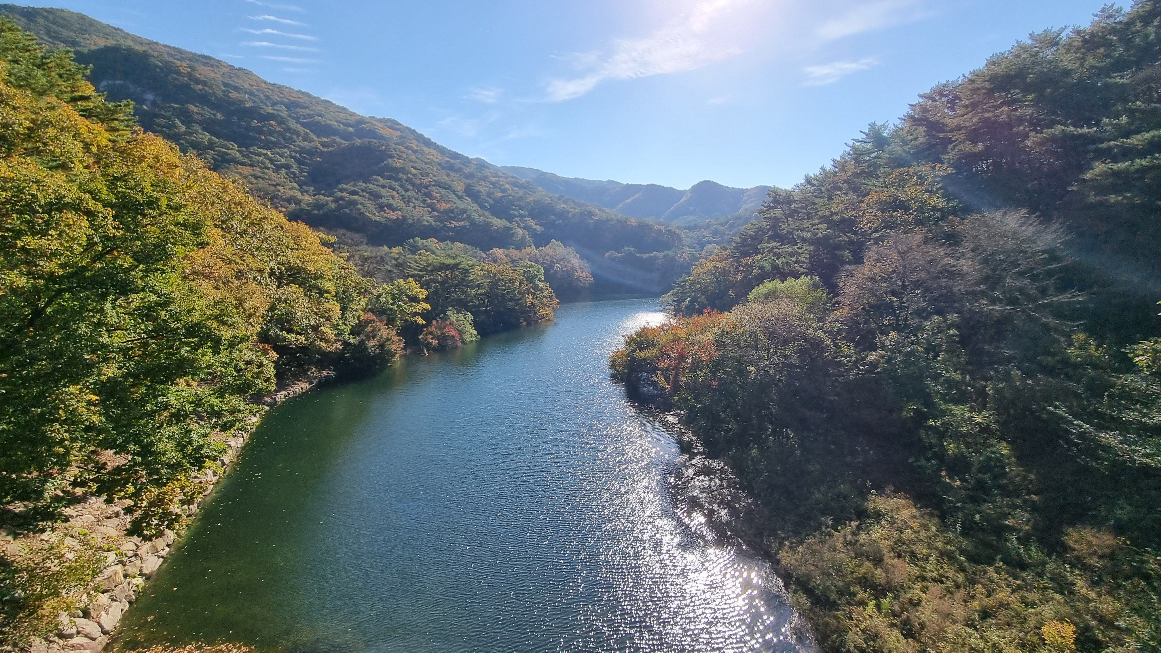 단풍이 물들어 가는 소양호의 모습입니다. 사진왼쪽으로 선착장이 있는데요, 저는 이번에 화천숲속자연휴양림 캠핑을 겸해서 차로 다녀왔답니다.