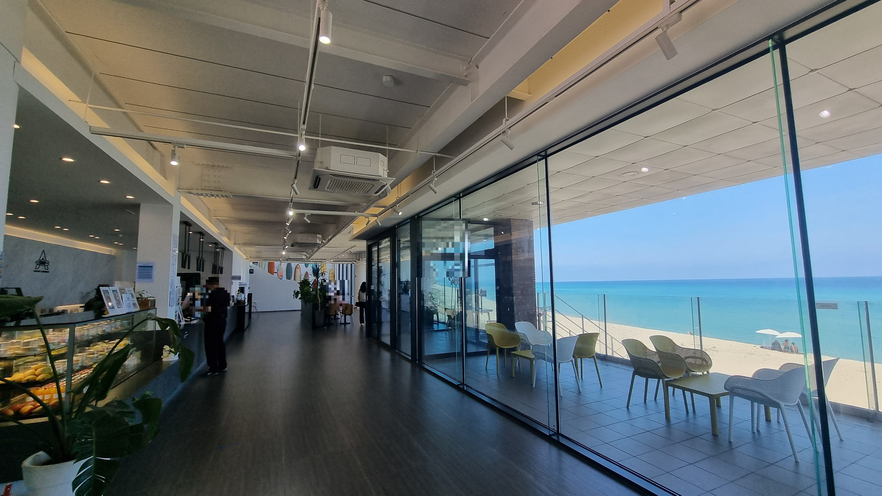 당연히 창쪽을 선호하기 때문에 창쪽으로만 사람들이 몰려있는데요, 안쪽에서도 바다 풍경이 보여서 기왕이면 창쪽 테이블이 좋겠지만 안쪽도 나쁘지 않아요.