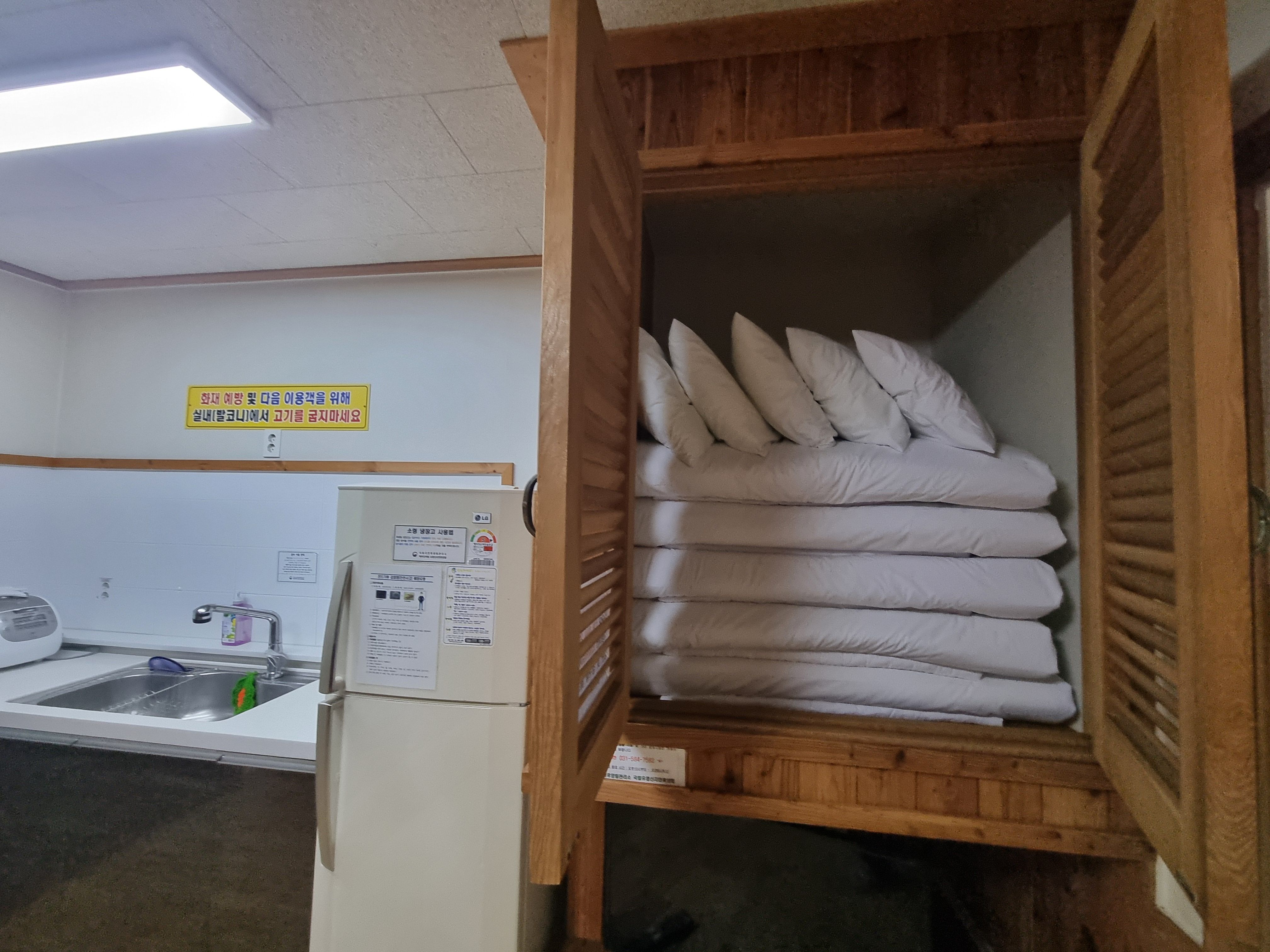 이불장에는 5인실에 밖에 5세트 침구가 준비되어 있습니다.