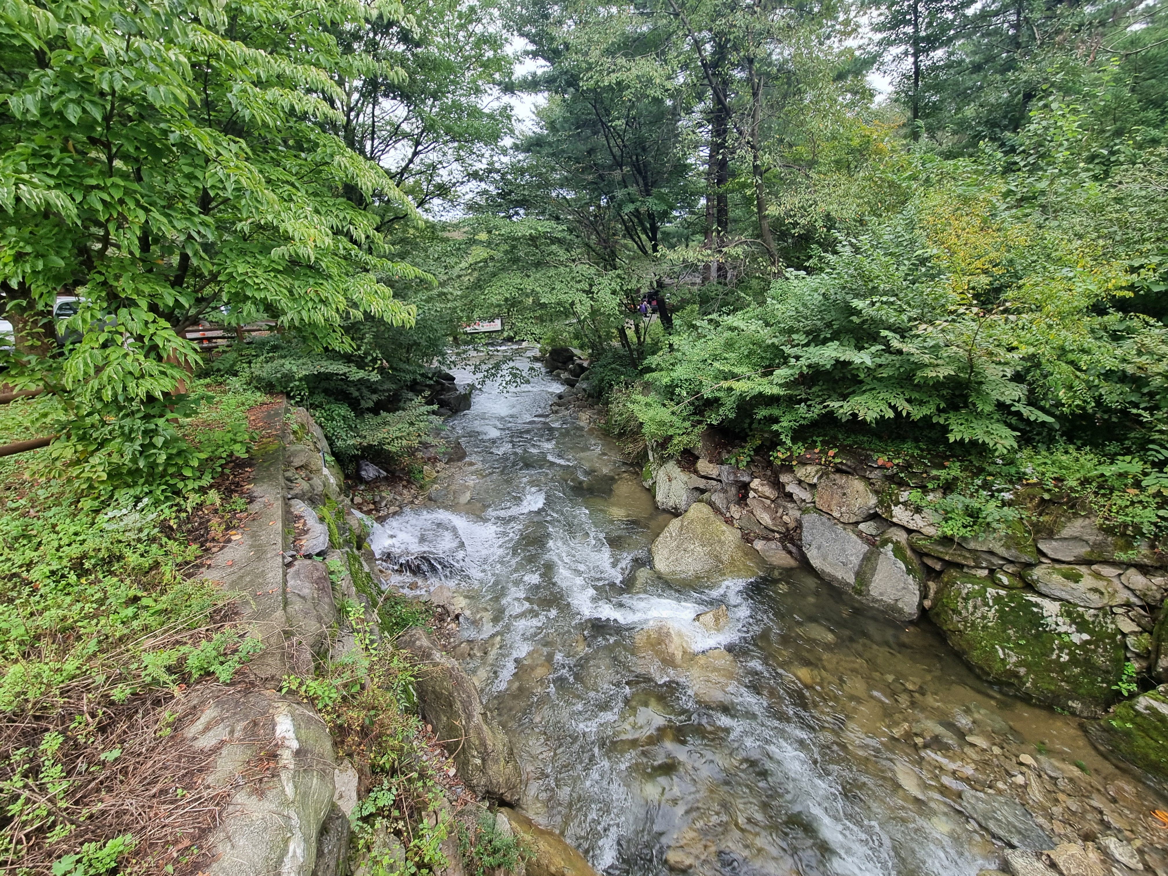 올빼미 호실 앞에 유명산계곡의 모습입니다. 전날 비가온뒤라 수량이 아주 풍부하네요. 유명산계곡은 사시사철 마르지 않는 계곡으로 여름철에는 물놀이 장소로도 좋습니다.