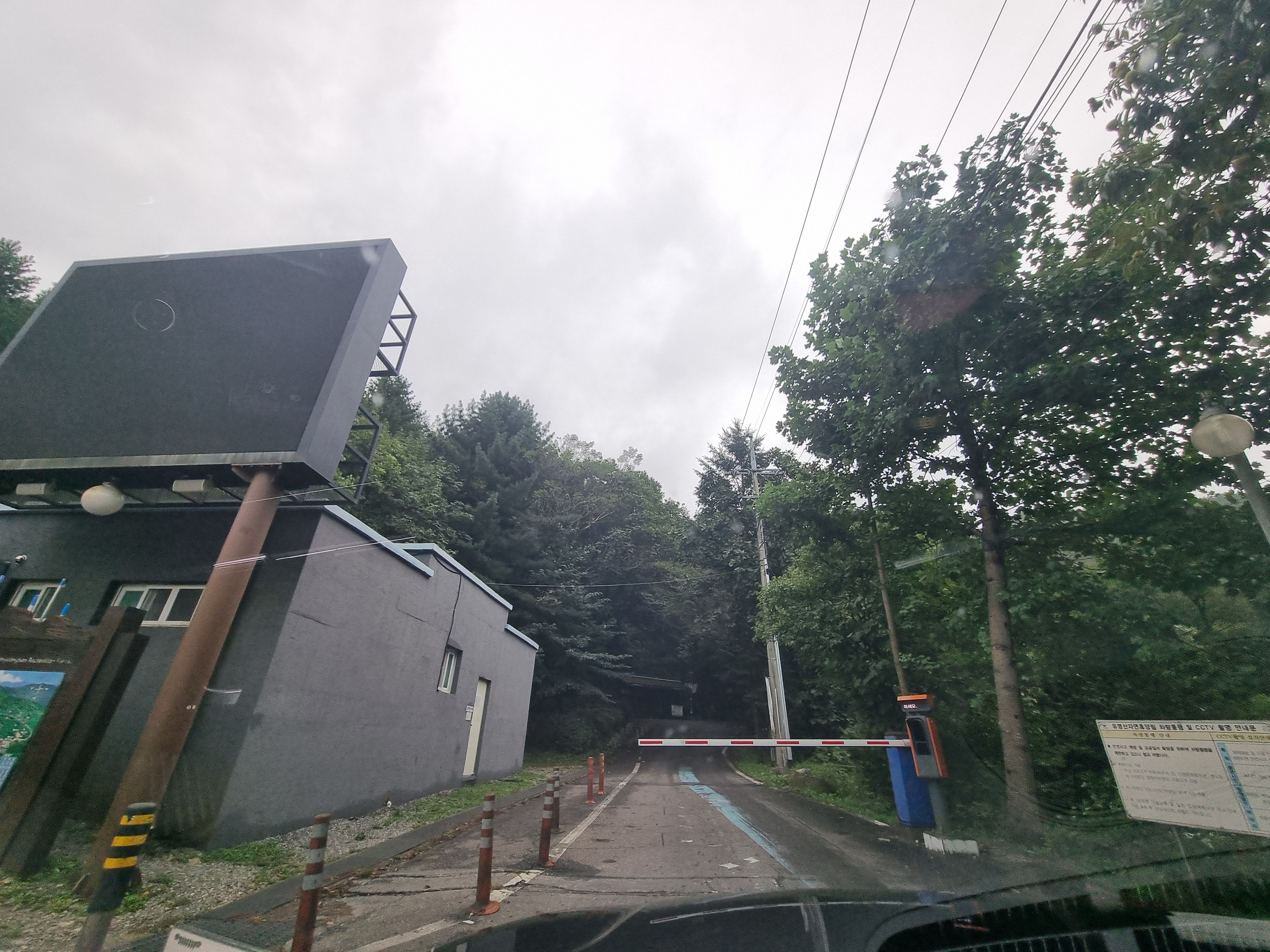 키를 받고나서 연립동 올빼미도 향하는길은 2번의 관문을 거치게 되는데요, 주차장을 지나 제1야영장 옆에 설치된 차단기입니다. 2야영장과 연립동 예약자만 차량 출입이 가능하죠.