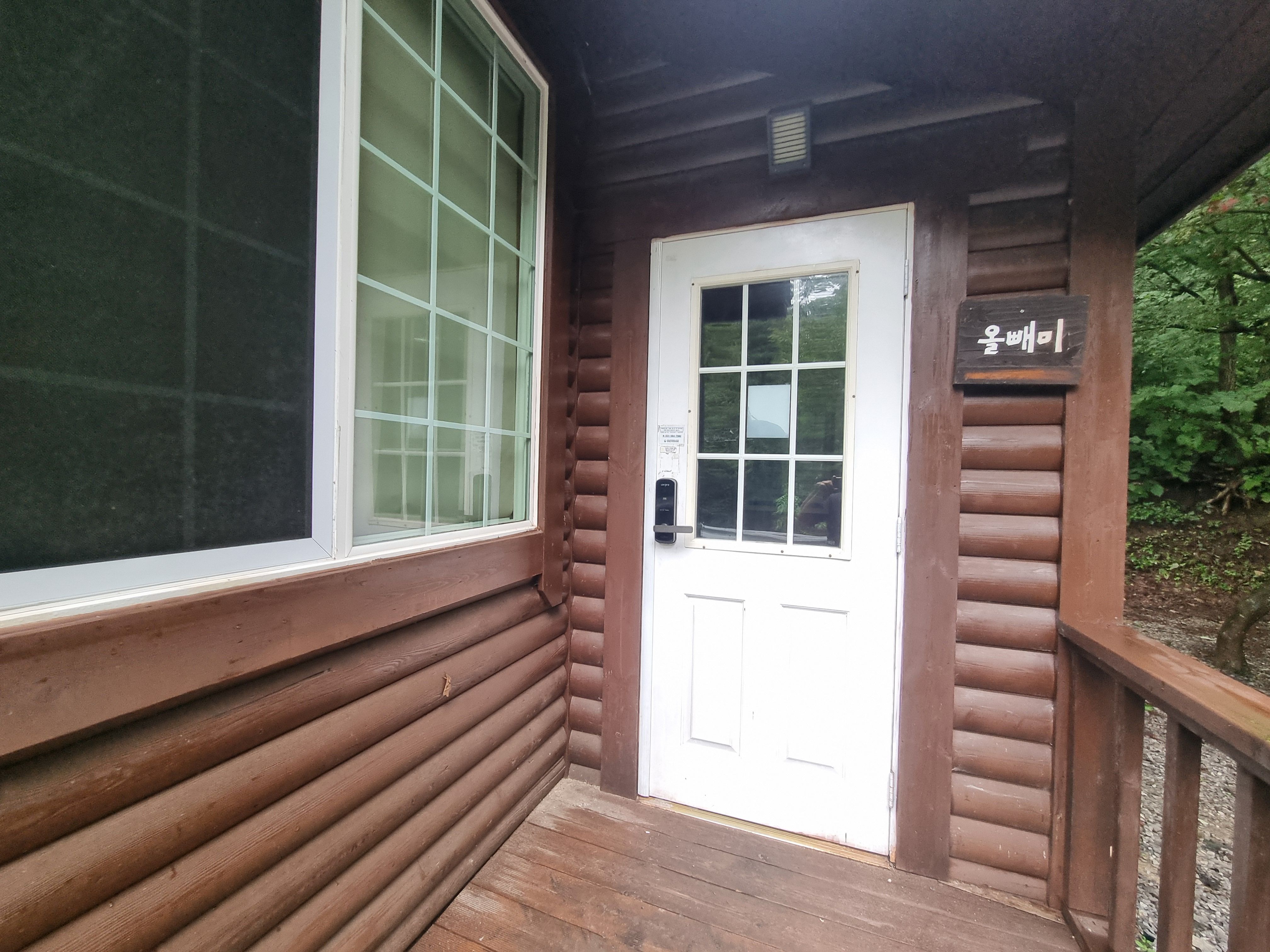 5인실의 휴양림 숙소인데요, 현관은 이처럼 생겼습니다.