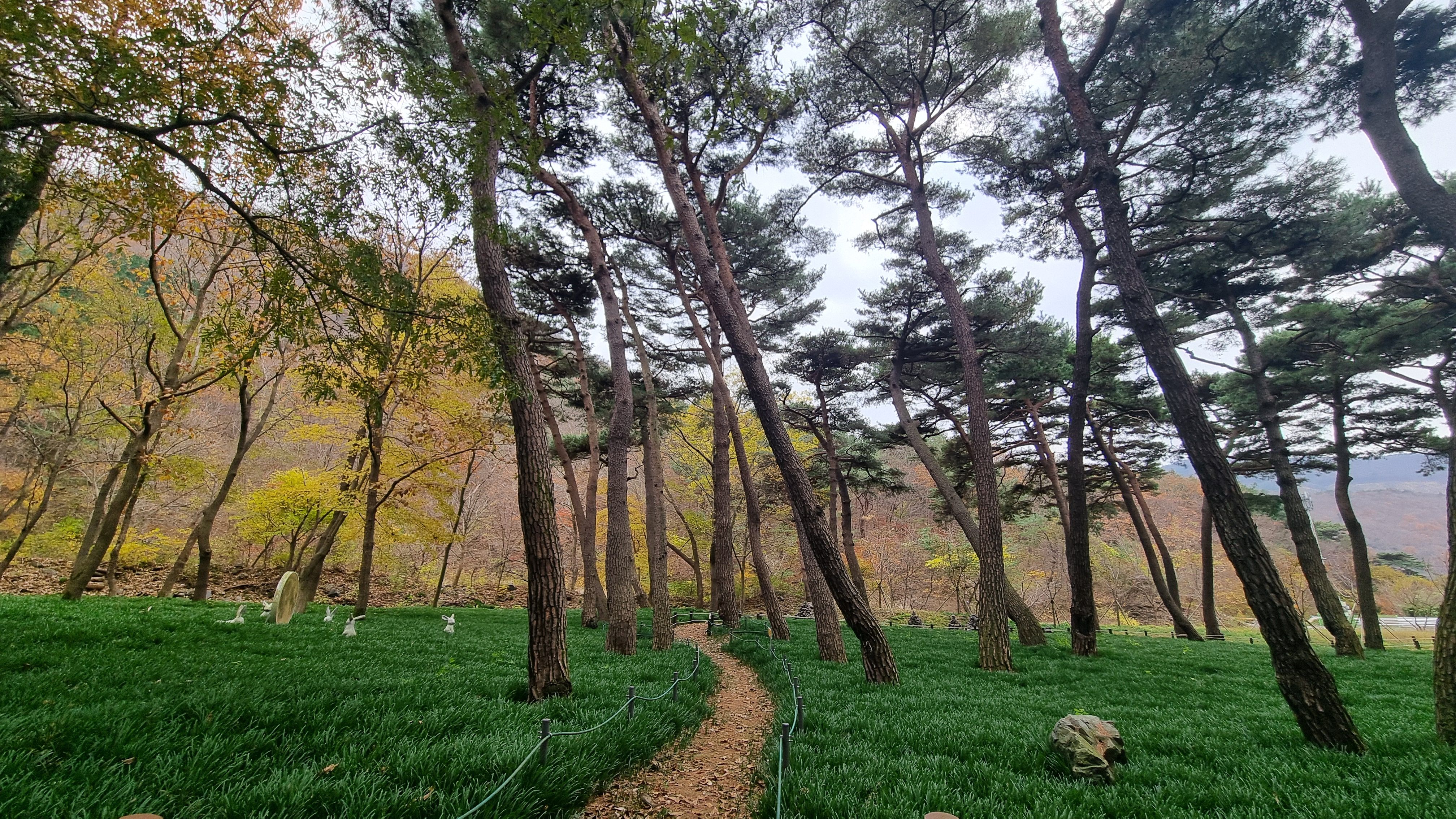 매표소 옆에는 멋진 송림이 있는데 마치 잔디밭처럼 펼쳐진 풍경이 이색적입니다. 이곳이 꽃무릅 군락지라고 하니 9월즈음에는 너무나 멋진 풍경을 경험 할 수있겠습니다. 이곳에서 사진촬영 놓치지 마세요.