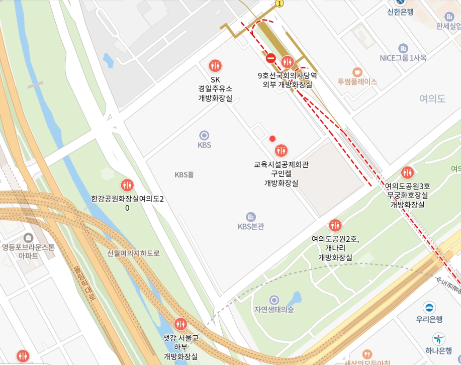 국회의사당역 남측의 여의도 개방 화장실을 알아보겠습니다.