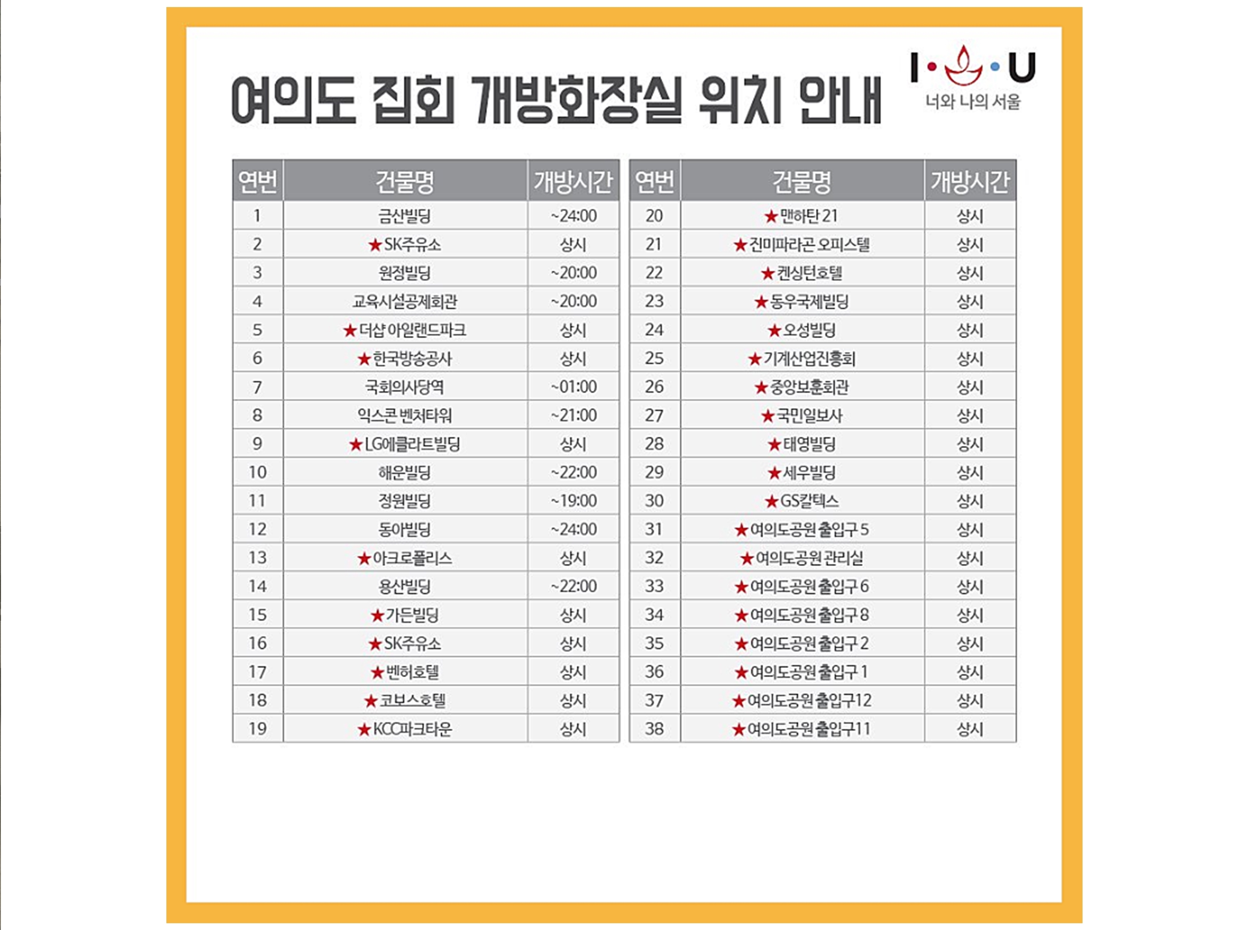 여의도 화장실 집회 세계 불꽃축제 개방화장실 정보 공유