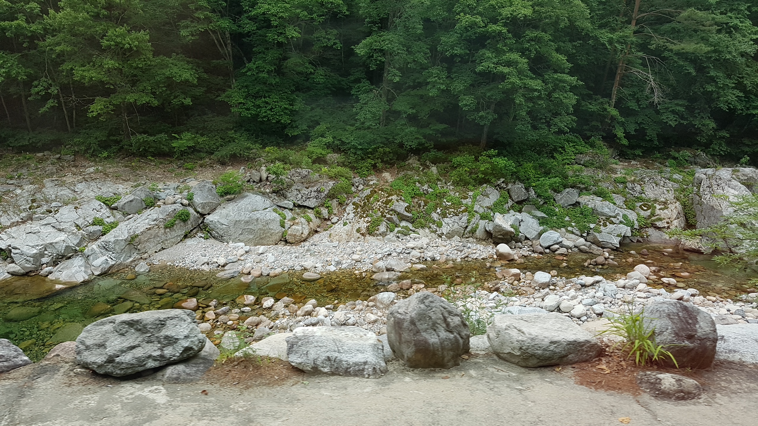 계곡 도착과 동시에 놀란 건, 발이 닿을 정도로 물이 맑다는 점이었습니다. 자갈과 돌들이 훤히 보이고, 흐름도 조용하고 안정적이라 아이들이 물속에서 오래 놀아도 걱정이 없었습니다.