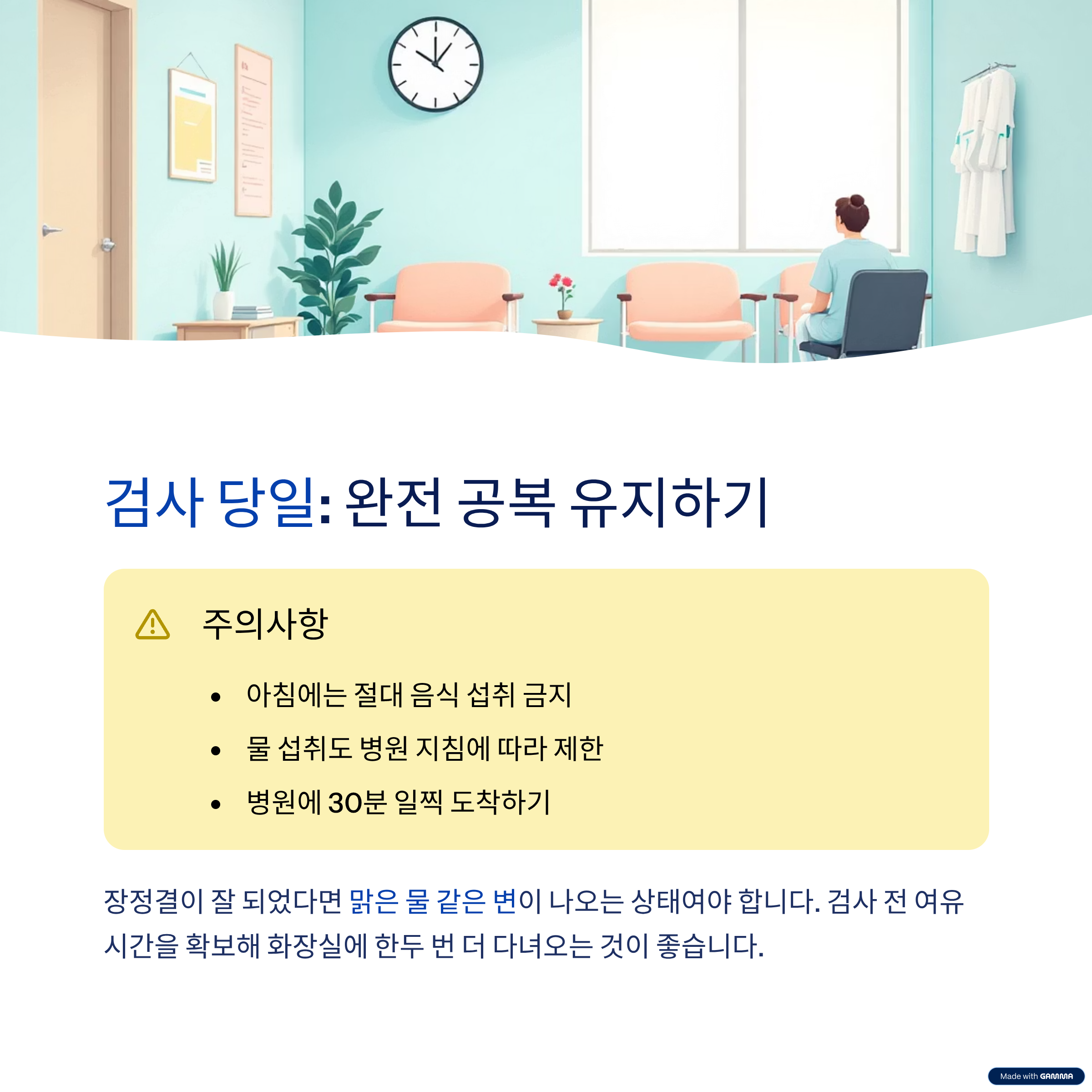 장정결제 이후 맑은 물 같은 변이 나오는 상태면 준비는 잘 된 겁니다.