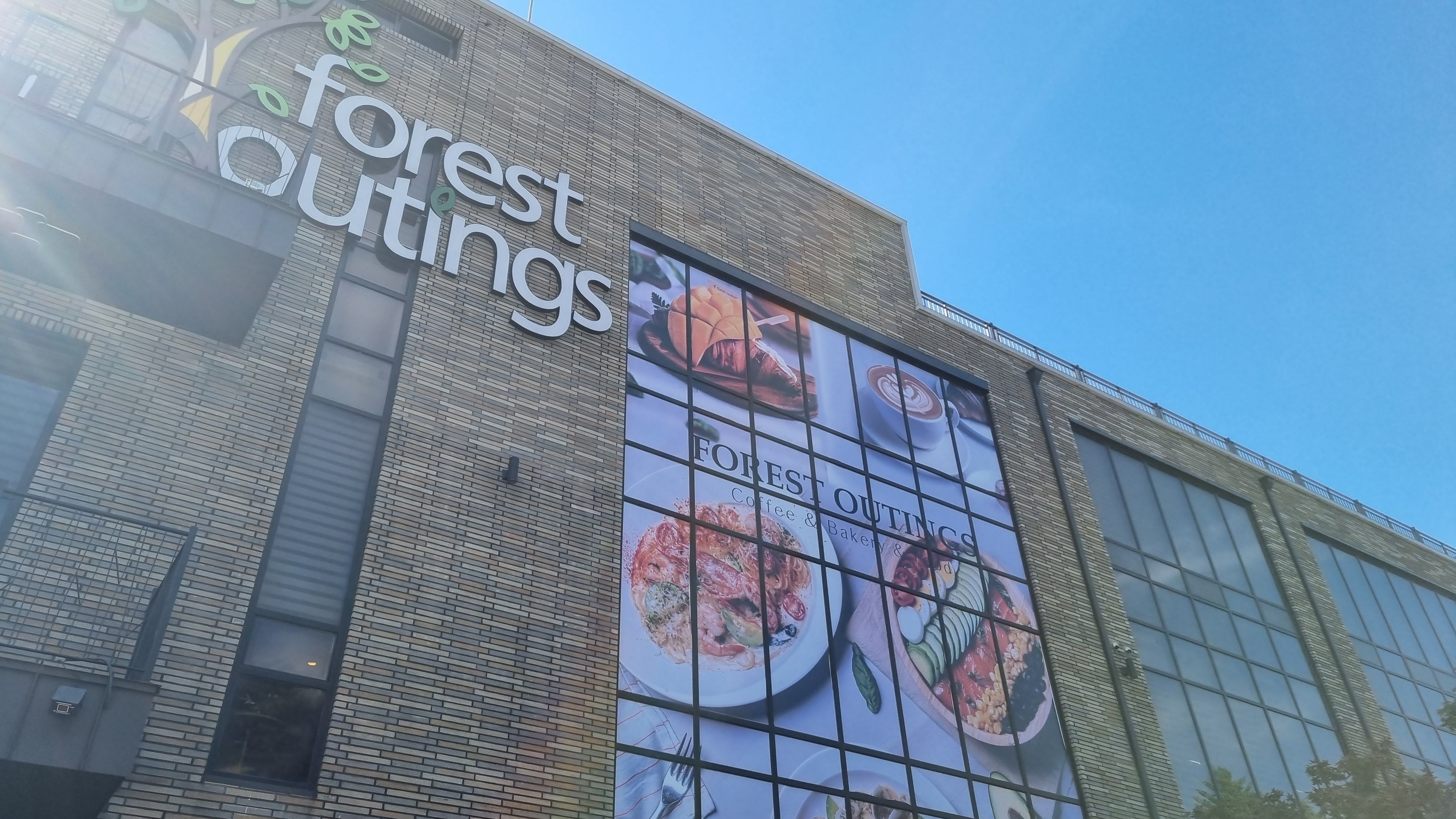 포레스트아웃팅스는 외관부터 눈에 띄는 개방감을 준다는 점이 가장 먼저 느껴집니다. 통창 구조라 내부가 환하게 보이고, 건물 크기도 넉넉해 넓은 실내 공간이 특징입니다.
