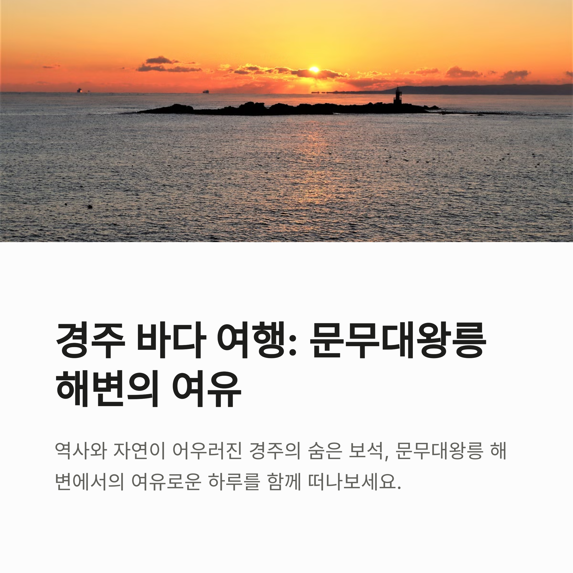 경주 바다 여행의 매력은 단순히 아름다운 풍경을 넘어서, 그 속에 담긴 깊은 역사와 문화에 있습니다. 문무대왕릉은 그 역사적 의미로 여행객들에게 큰 감동을 주며, 해변의 자연경관은 모든 사람에게 여유로움과 평온함을 안겨줍니다. 경주의 다른 명소들과 함께 바다를 즐기며, 그 속에서 느낄 수 있는 깊은 의미와 아름다움을 함께 경험해보세요.