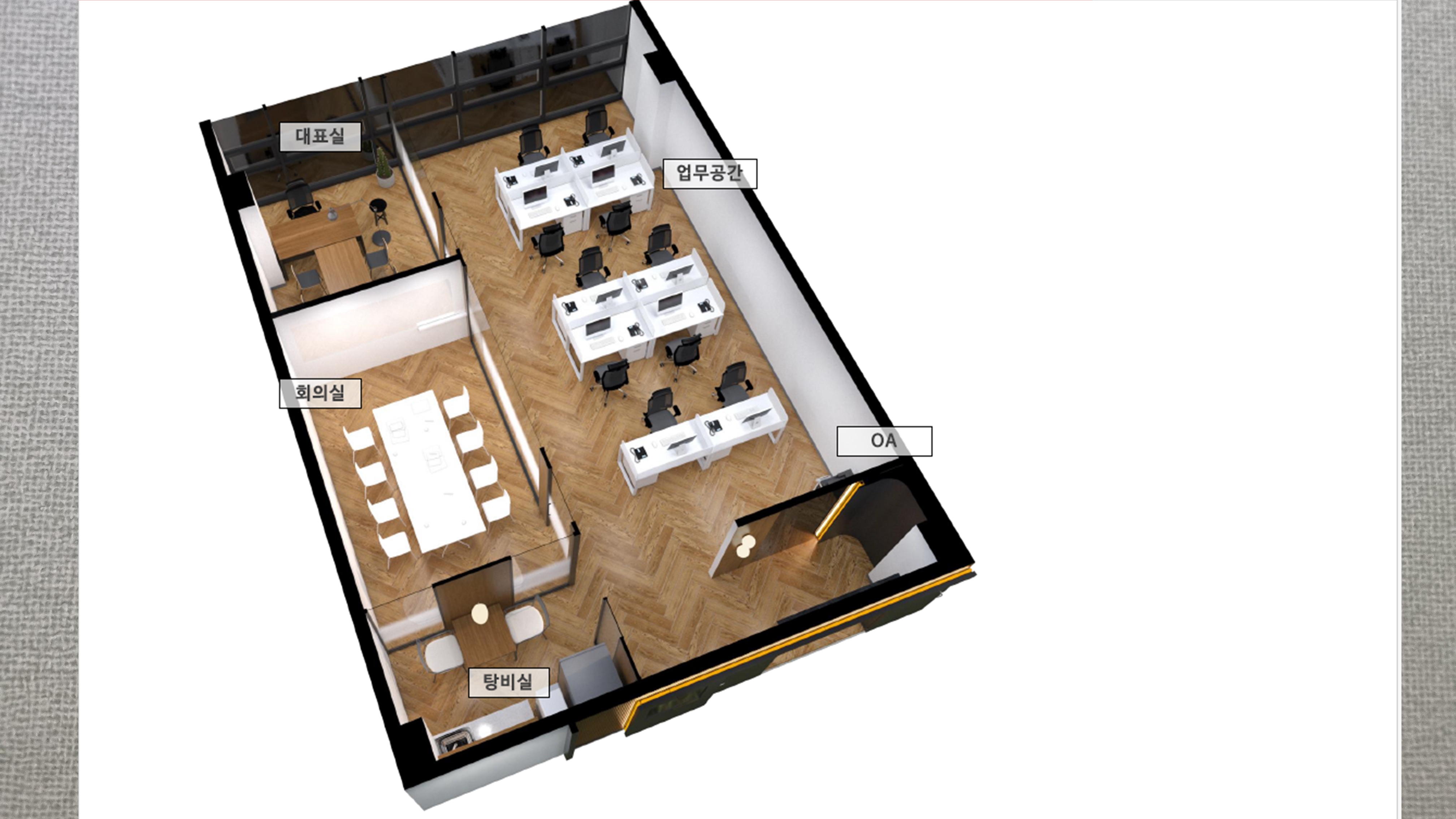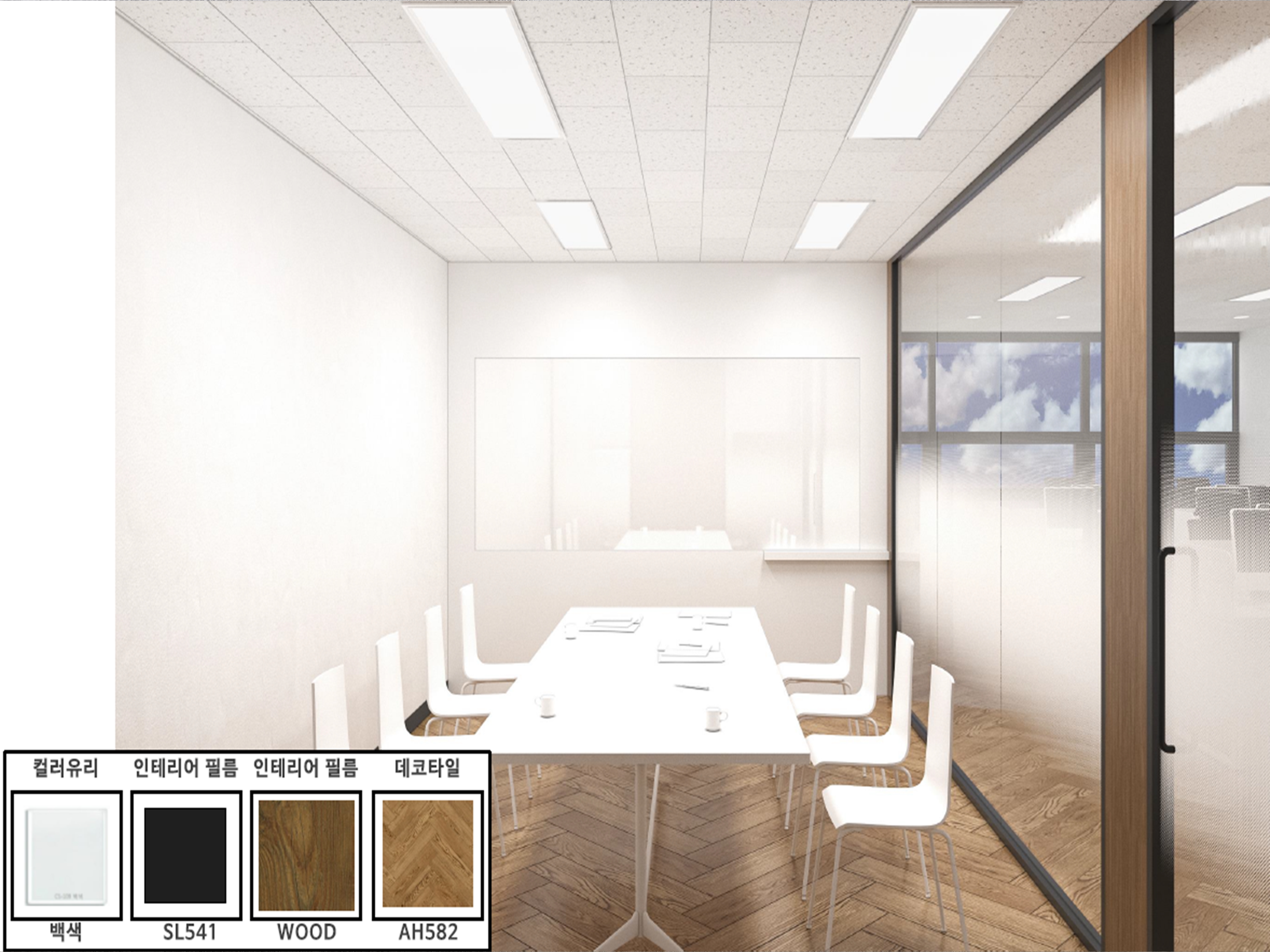 회의실로 쓸 룸은 10명 전후로 회의가 진행한 형태로 시공하고 있습니다.