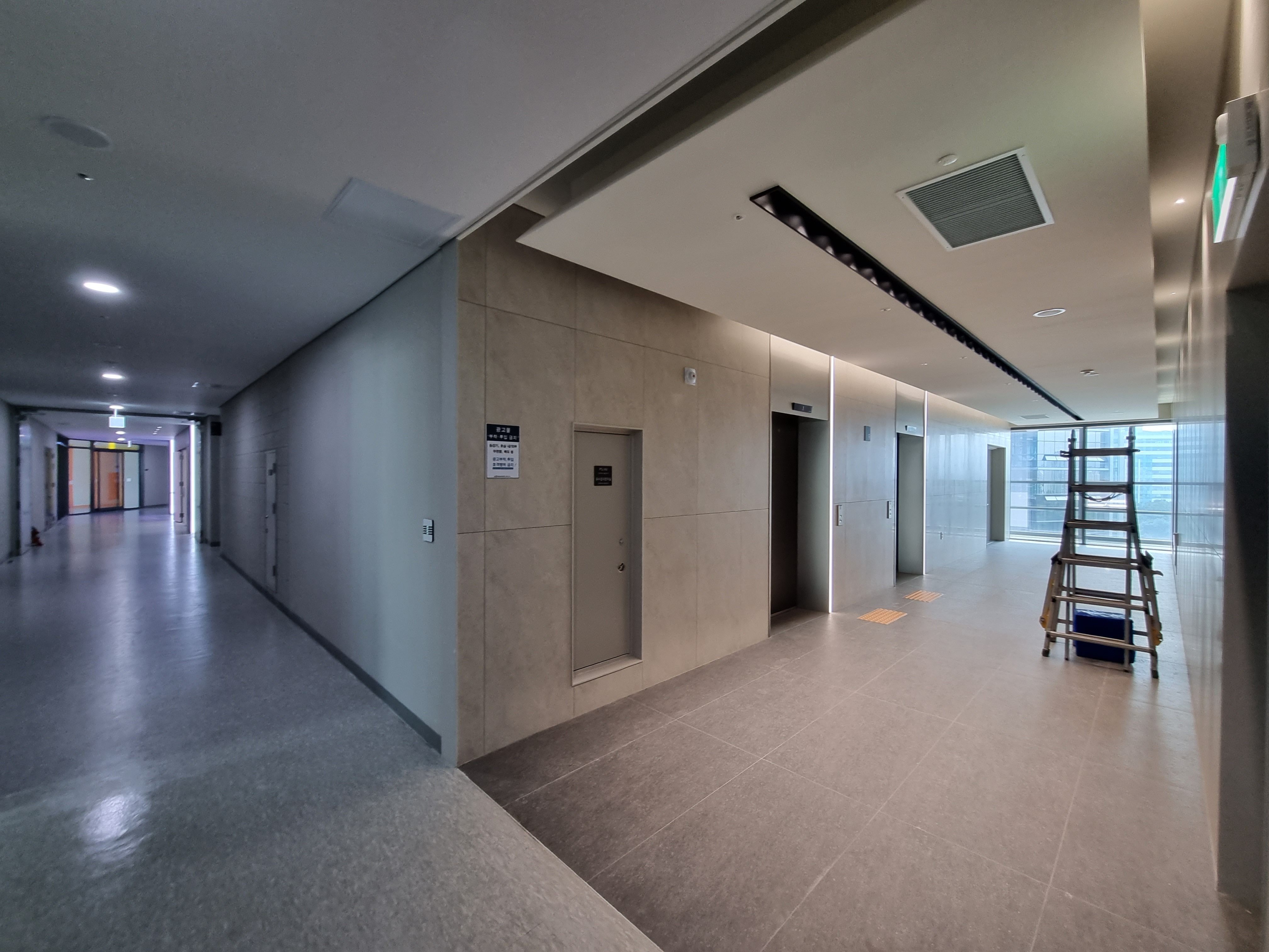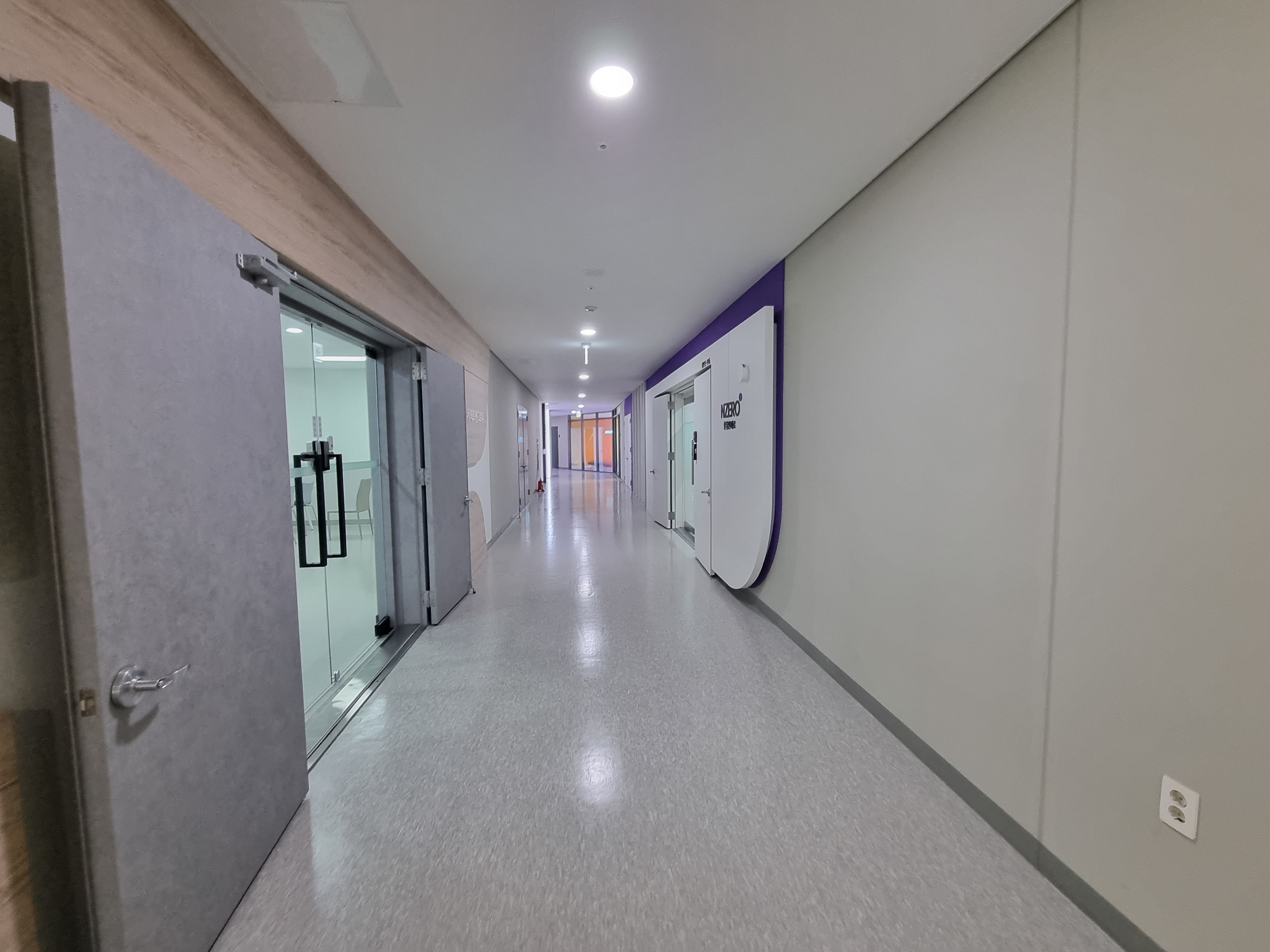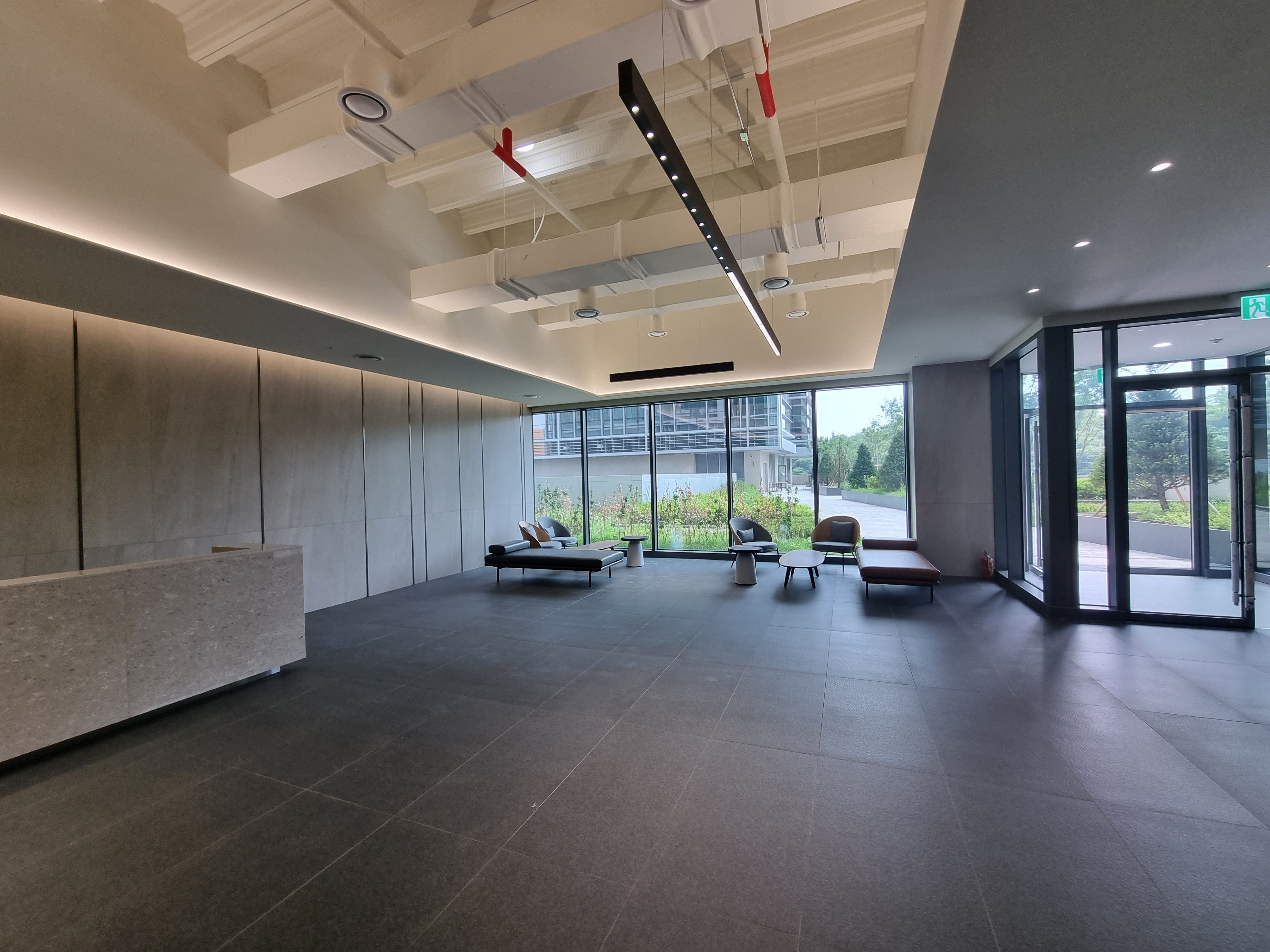 특히, 이곳은 과천사무실 뿐만 아니라 바이오,제약, 전자 관련 기업들의 도시형공장으로도 사용에 무리가 없더록 지하층에 중대형트럭과 탑차 진입이 가능한 하역장과 최근 준공된 건물들이 복도가 좁아 파레트교행이 불가능한곳도 많은데 이곳에서는 넓은 복도시설로서 상품이동에도 문제가 없게 시공했습니다.