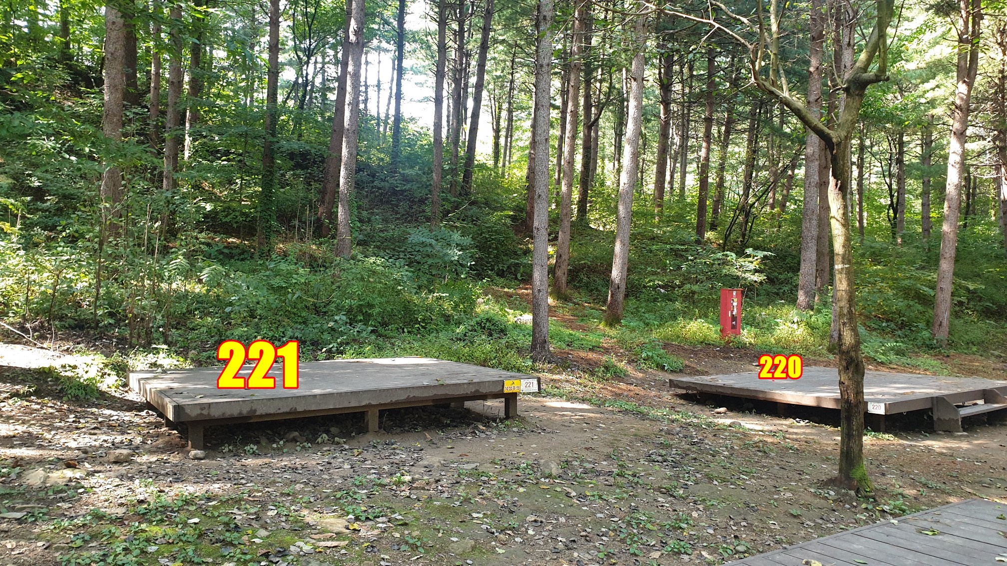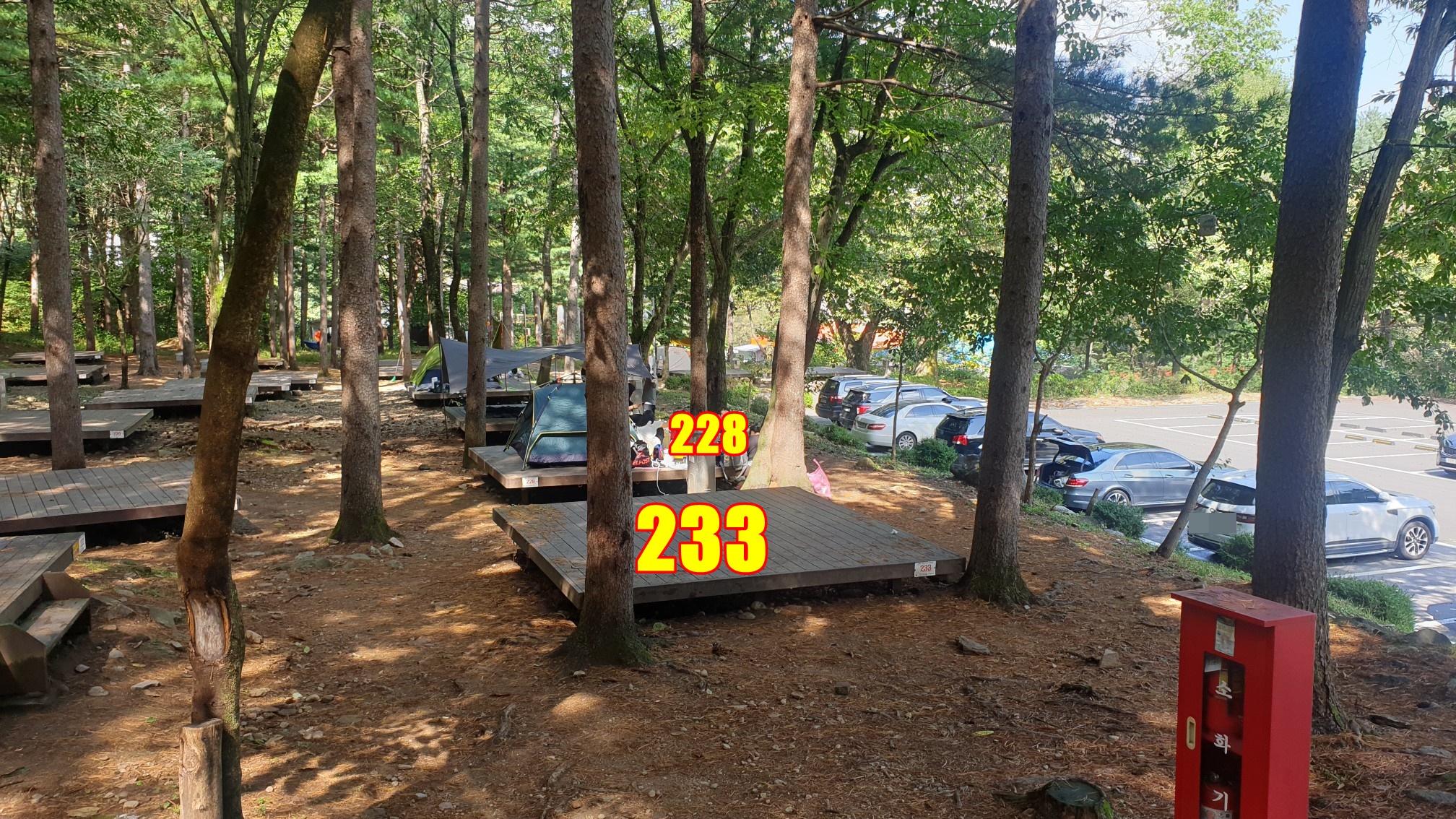 그다음으로 중간지역의 219번, 222번 유명산캠핑장 데크.