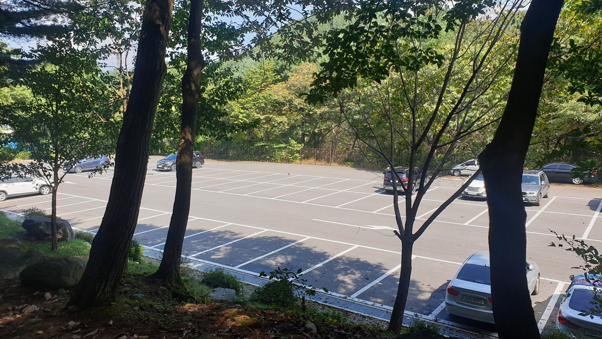 유명산2야영장에서 내려다본 주차장의 모습입니다. 이곳에 주차를 하고 장비를 날라야해서 대형텐트보다는 미니멀도 준비하시게 좋답니다.