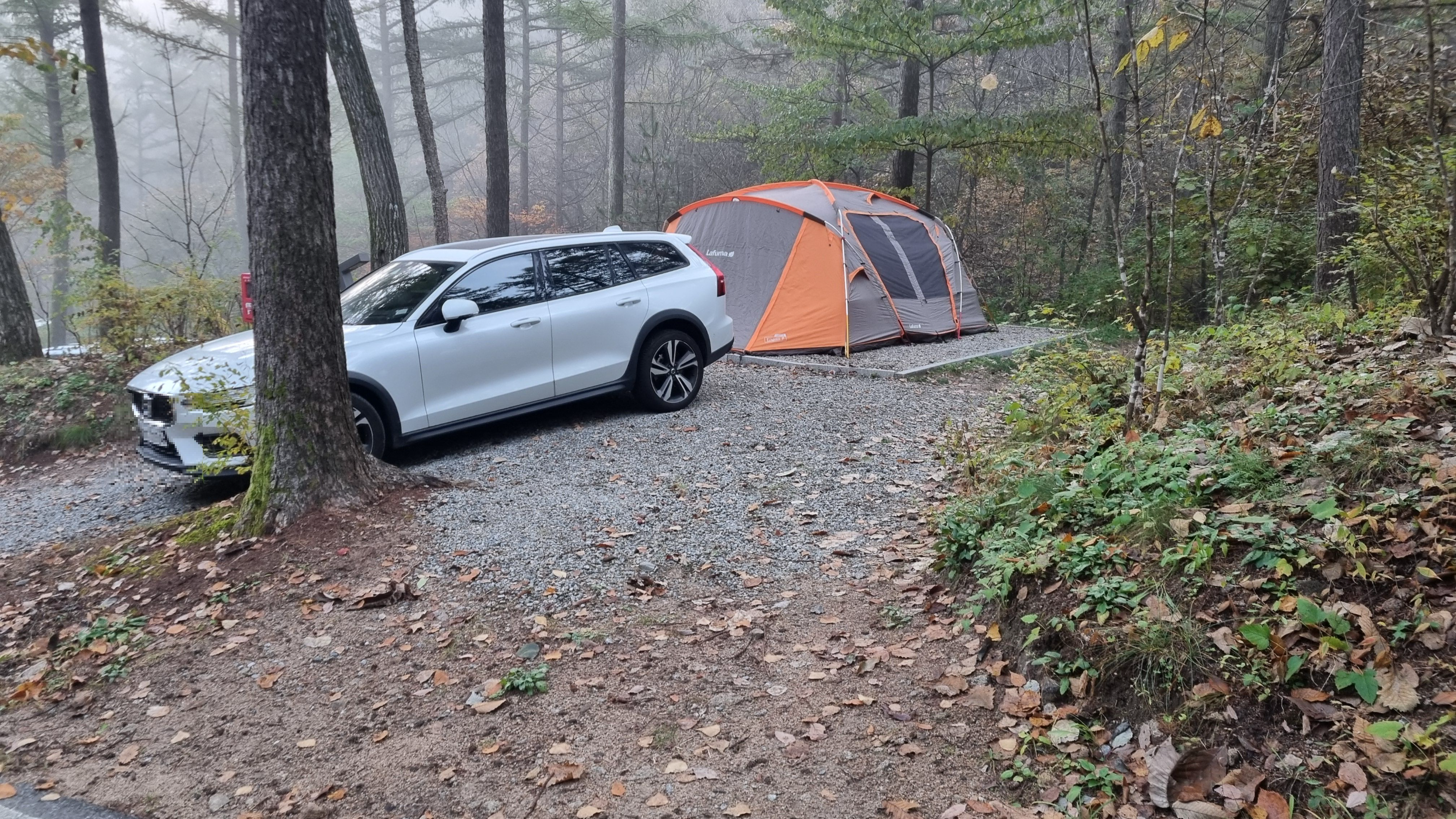 21번 바로 위가 33번 사이트인데 번호가 일율적이진 않습니다. 이곳은 대형텐트와 차량1대정도 주차공간에 약간에 경사 있습니다.