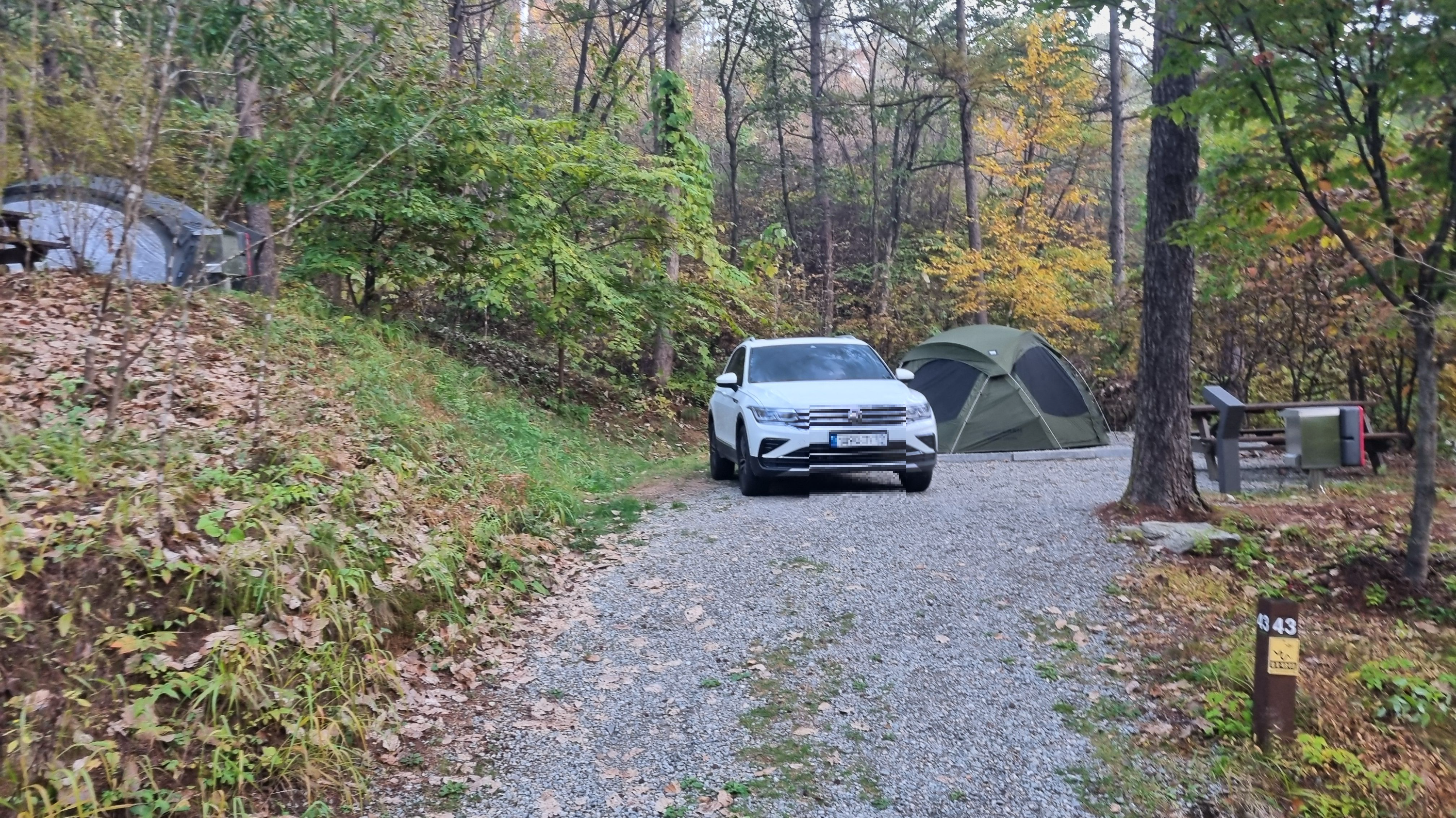 43번은 좀더 깊숙이 자리하고 있는데 앞쪽으로 공간 여유가 있어서 두 가족이 캠핑을 함께 한다면 좋은 곳일듯 합니다.