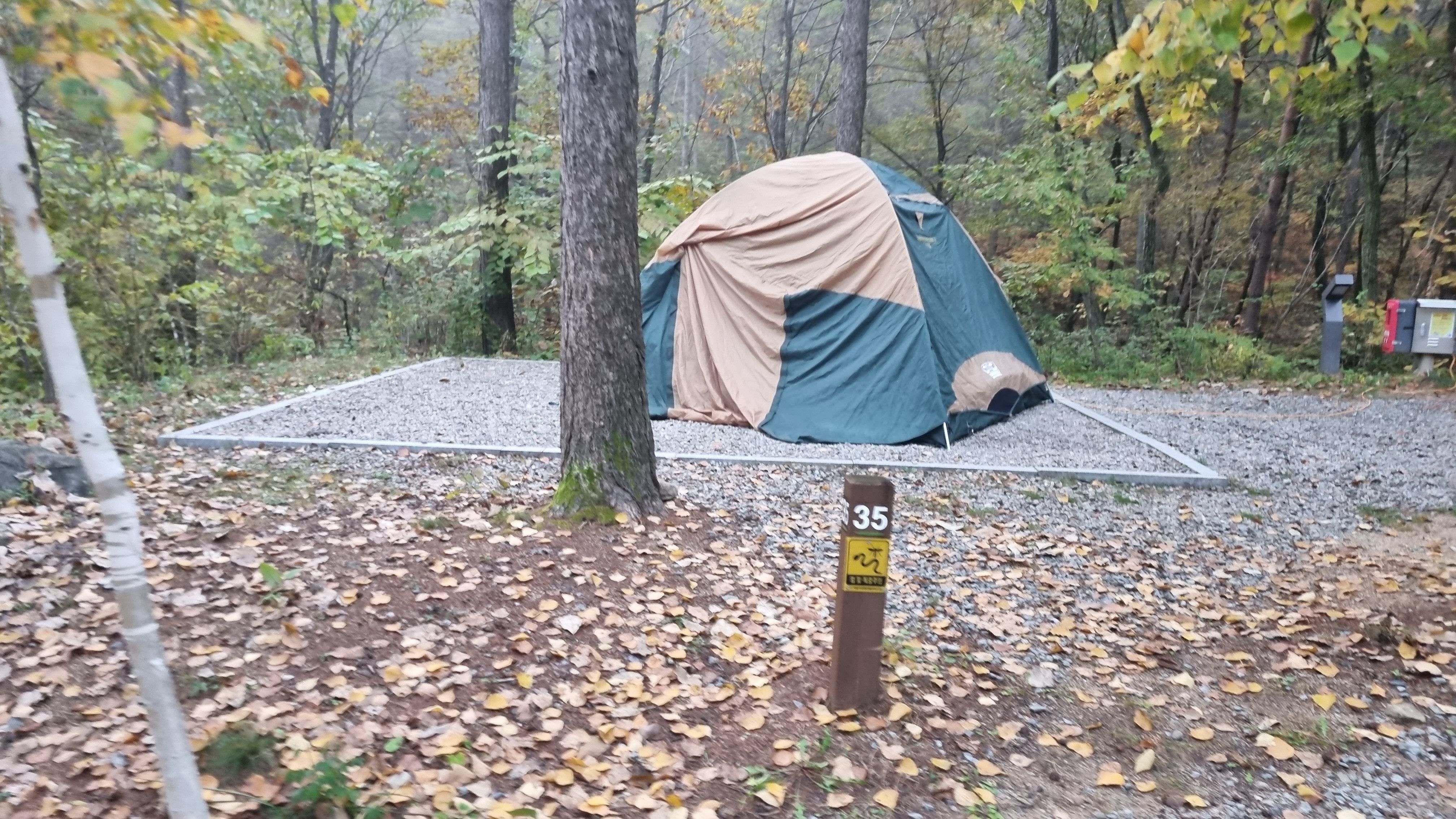 역시나 계곡 옆 25번은 좀더 숲속 느낌이 나는 곳이고 텐트 2동구축 문제 없습니다.