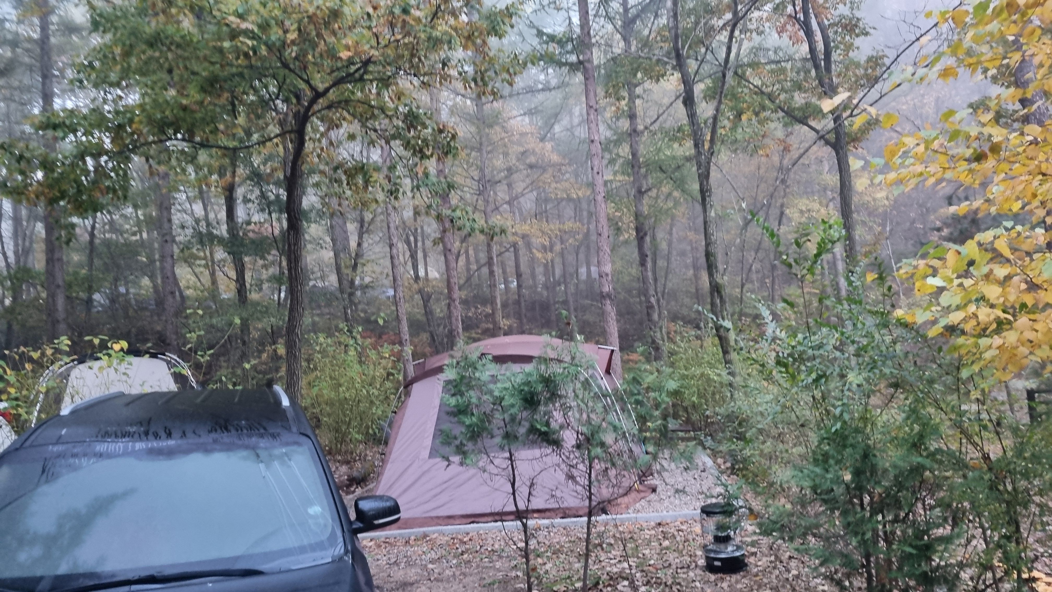 36번 사이트 옆으로 평평한 공간이 충분하고 차량은 가로로 주차한다면 겨울시즌에는 텐트와 쉘터 조합하기 좋은 곳입니다.