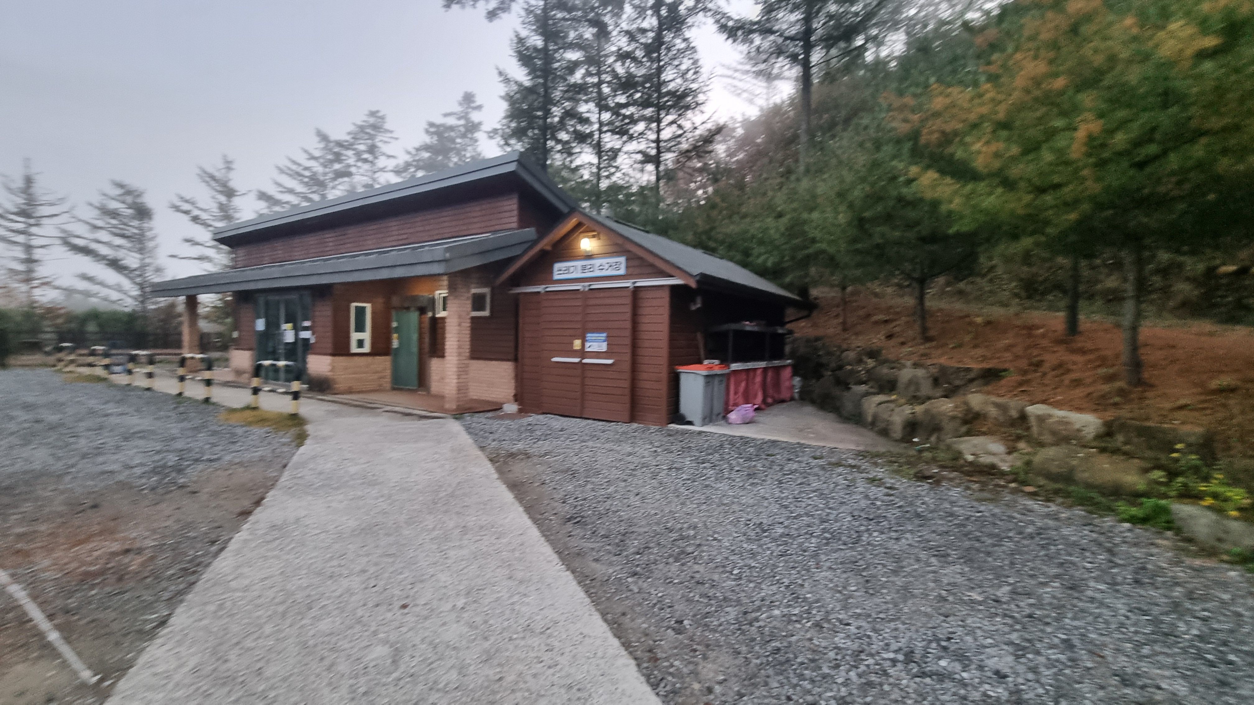 화천숲속자연휴양림 제2캠핑센터 건물입니다. 중간에 취사장 있고 마찬가지로 좌측여자 우측남자 화장실 및 샤워장이 갖춰져 있습니다.