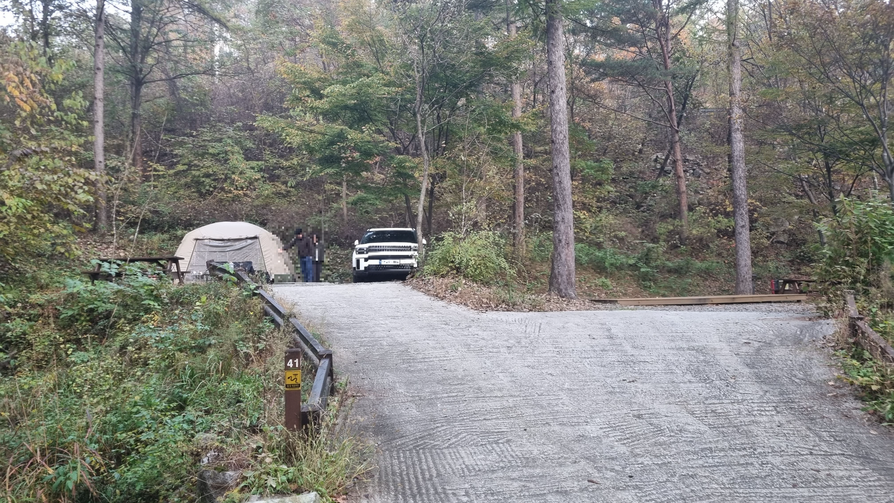 41번 과 40번이 진입로가 함께 있는 곳인데요, 41번 사이트에 사용중인 분이 계셔서 가까이 촬영은 못했는데 보는 느낌대로 텐트1동과 주차 무난한 사이트입니다.