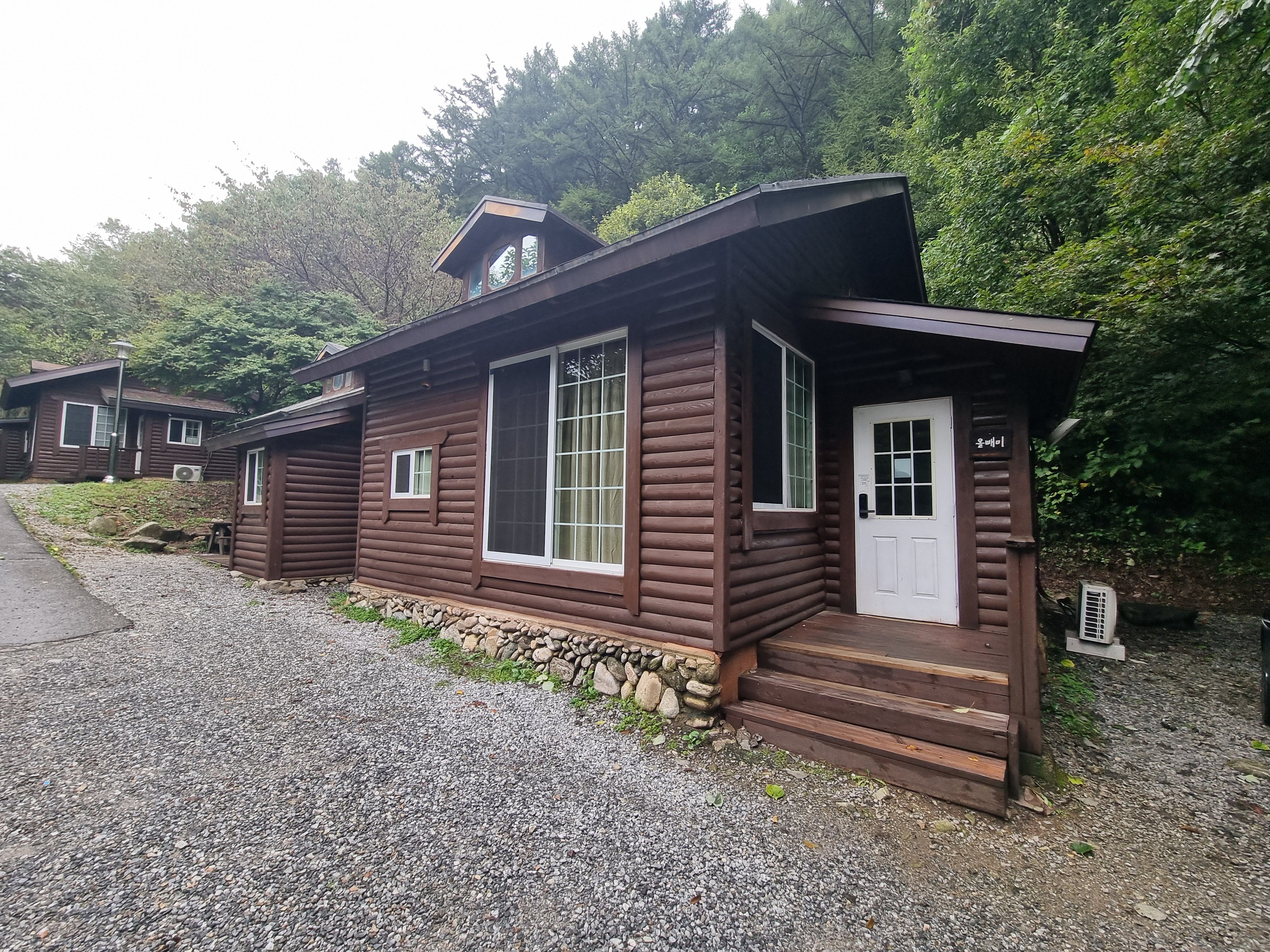 - 객실 특징: 독립형 통나무집 또는 산장 스타일로 자연 친화적이며, 각 동마다 피크닉 테이블이 설치되어 있어 바깥에서 식사하거나 휴식을 취하기 좋습니다. 계곡과 가까워 경치와 자연 소음을 동시에 즐길 수 있습니다. 내부는 다소 노후되었으나, 침구류, 주방용품, 정수기 등 기본 집기류는 잘 갖추어져 있습니다. 일부 객실에는 다락방이 있어 아이들에게 인기가 많습니다.