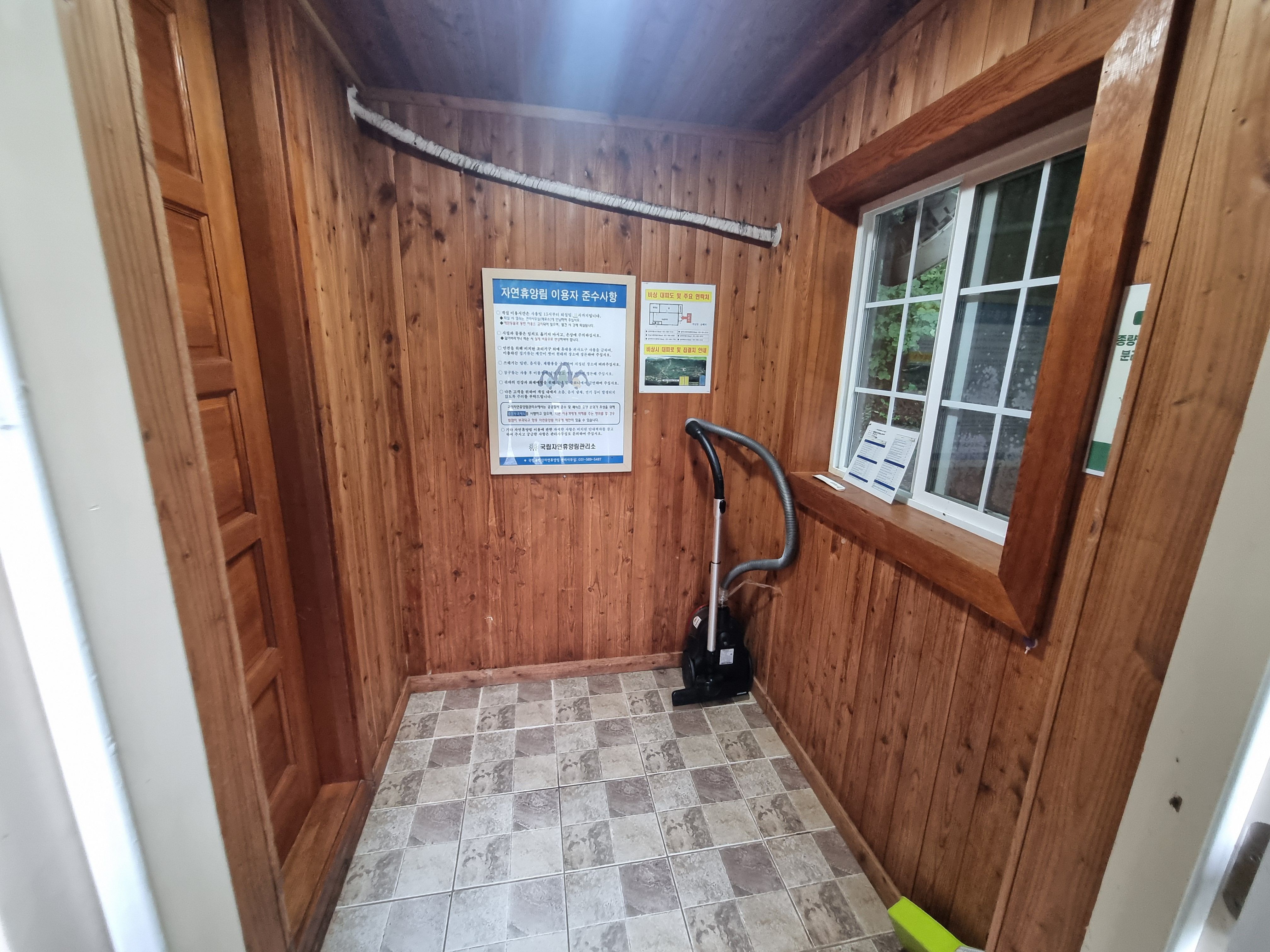 5인실의 휴양림 숙소인데요, 현관은 이처럼 생겼습니다.