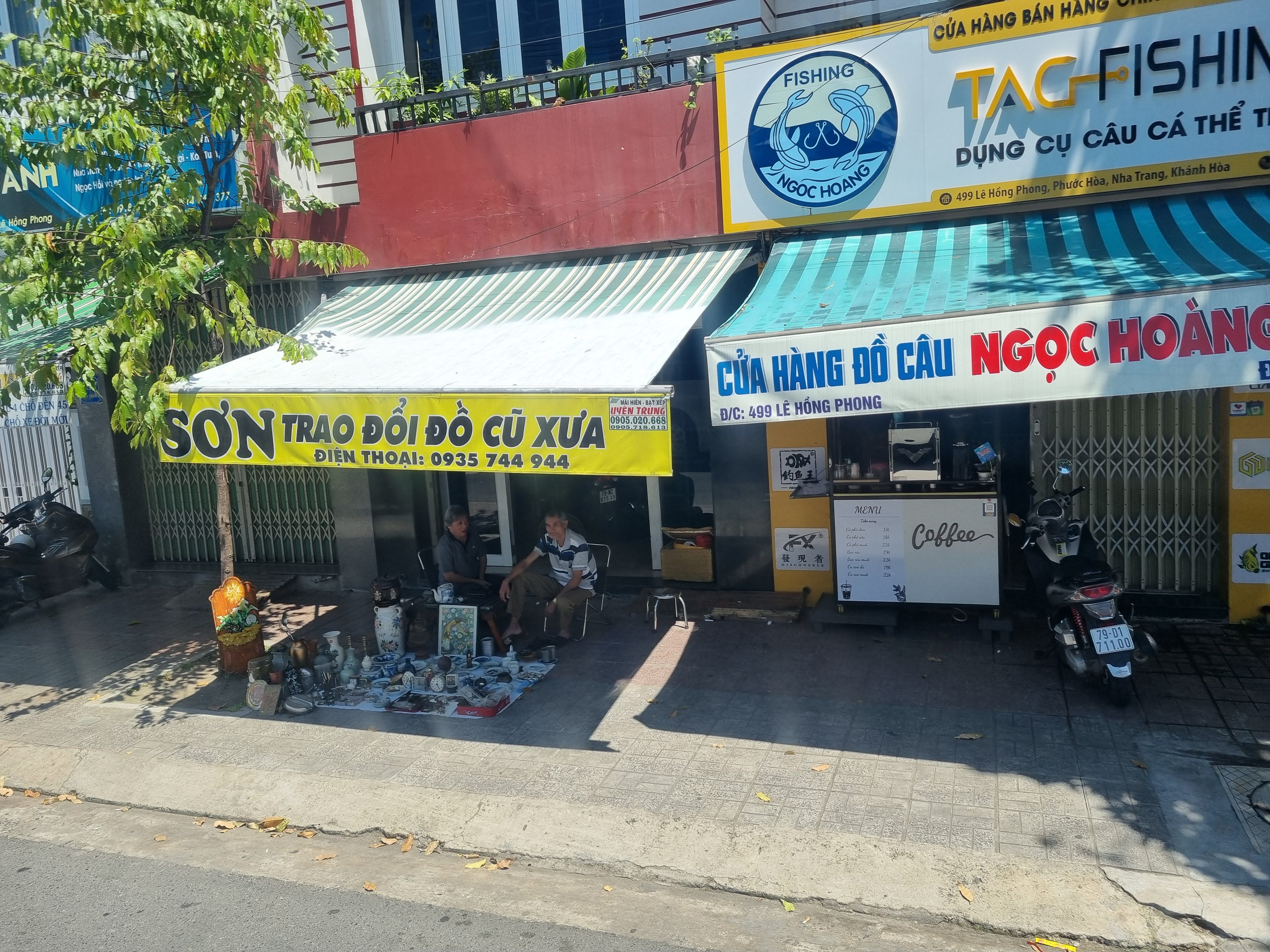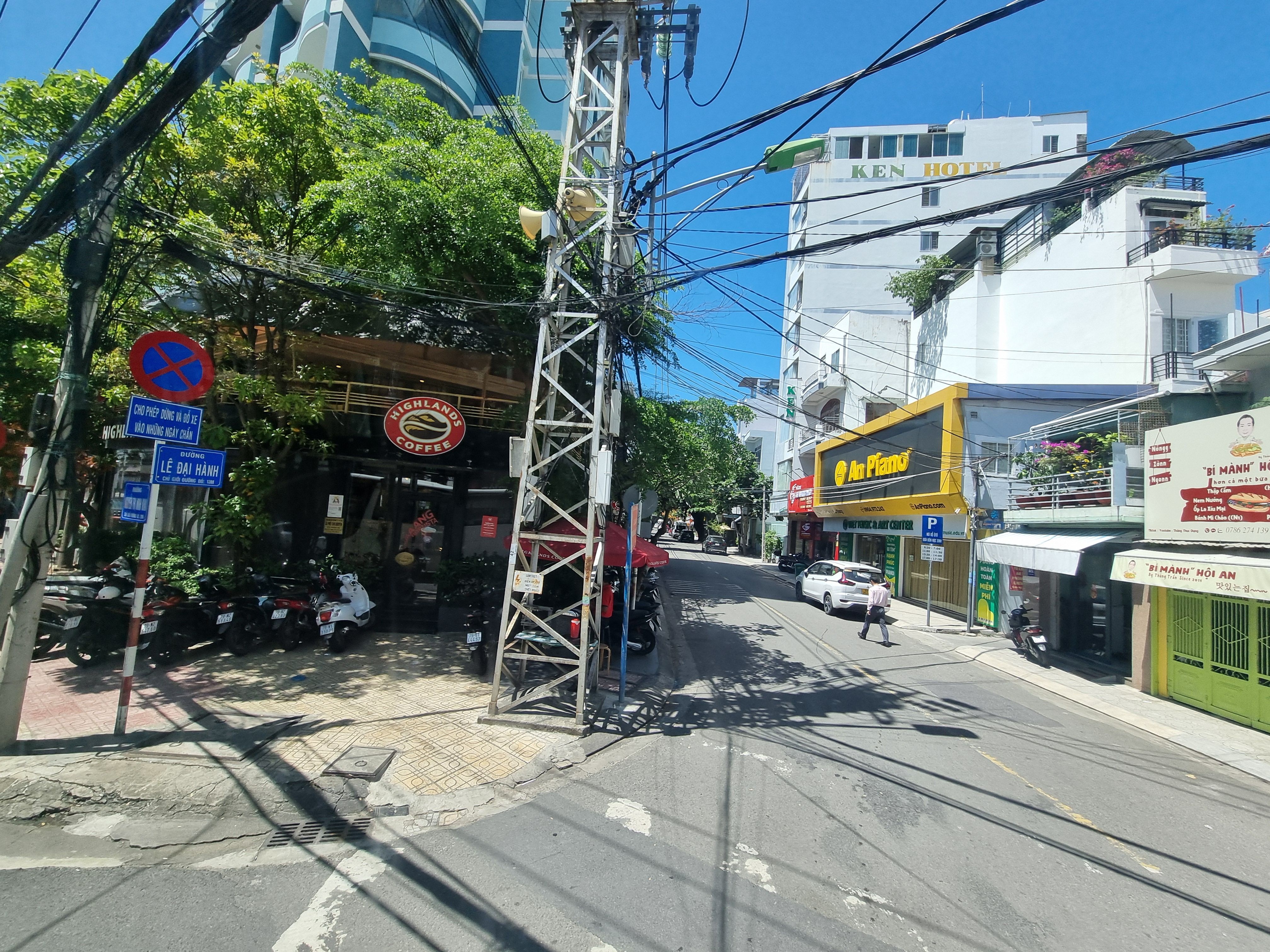나트랑 시내에 들어서니 다양한 상점들과 사람들이 많이 보이기 시작합니다. 베트남에서 가장 유명한 카페 체인점인 하이랜드커피에는 많은 사람들이 자리하고 있네요.