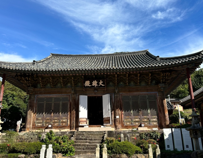 사찰 경내에는 보물 제396호 대웅전, 제578호 후불탱화, 제563호 홍교 등 문화재가 다수 남아 있습니다. 특히 홍교는 무지개 모양의 석교로 계곡과 어우러져 가을 햇살 속에서 더욱 빛납니다.