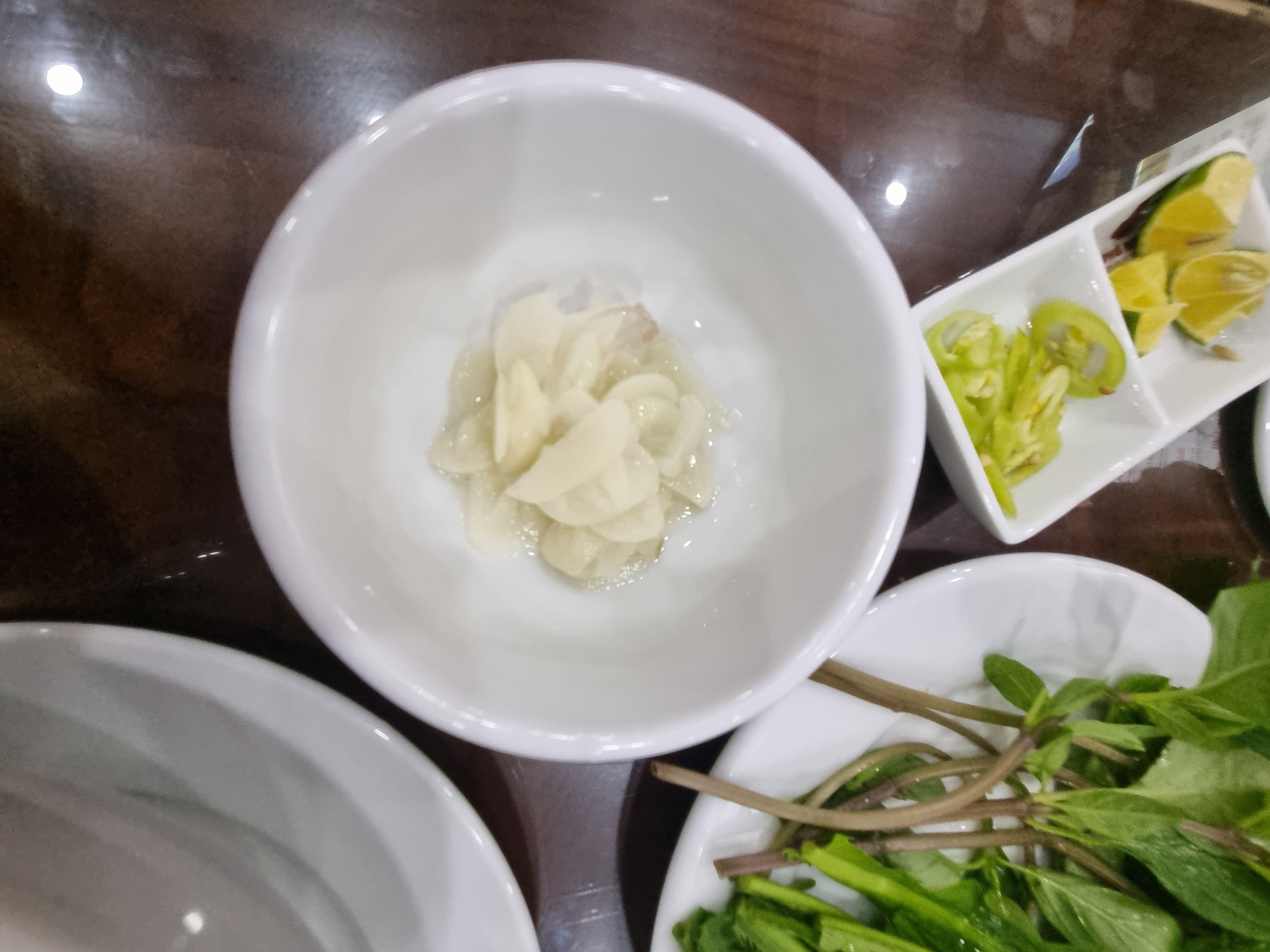그리고 또다른 별미인 절인 마늘을 쌀국수와 먹으면 느끼한 맛을 잡아주고 더 맛있습니다. 전체적으로 포두옴에서 보낸 시간은 아주 맛있는 시간이 되었어요. 높은 품질의 음식들과 아늑하고 친근감 넘치는 분위기로 인해 친구들과 가족들에게 강력히 추천할 만했습니다.