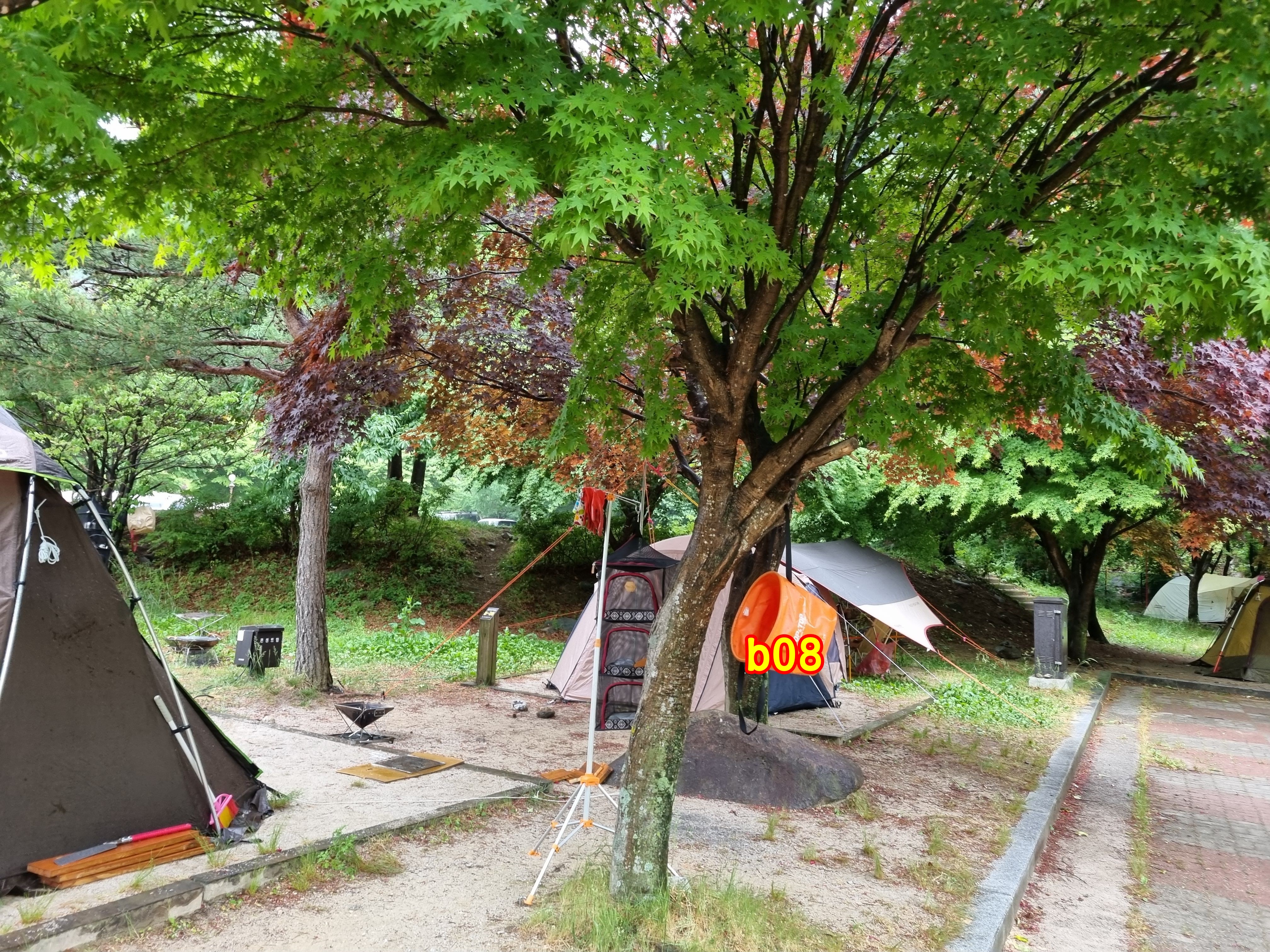D영지 중간의 사이트들은 A영지에 비해서 나무들이 작아서 여름철 그늘확보는 다른영지들보다 떨어집니다. 그러나 오토캠핑이 가능하고 사이트가 획일적이지 않아서 번잡함이 덜한 것은 장점이죠. 그늘에 더 우선한다면 A영지를 번잡함이 덜한것을 우선한다면 D영지가 좋겠네요.