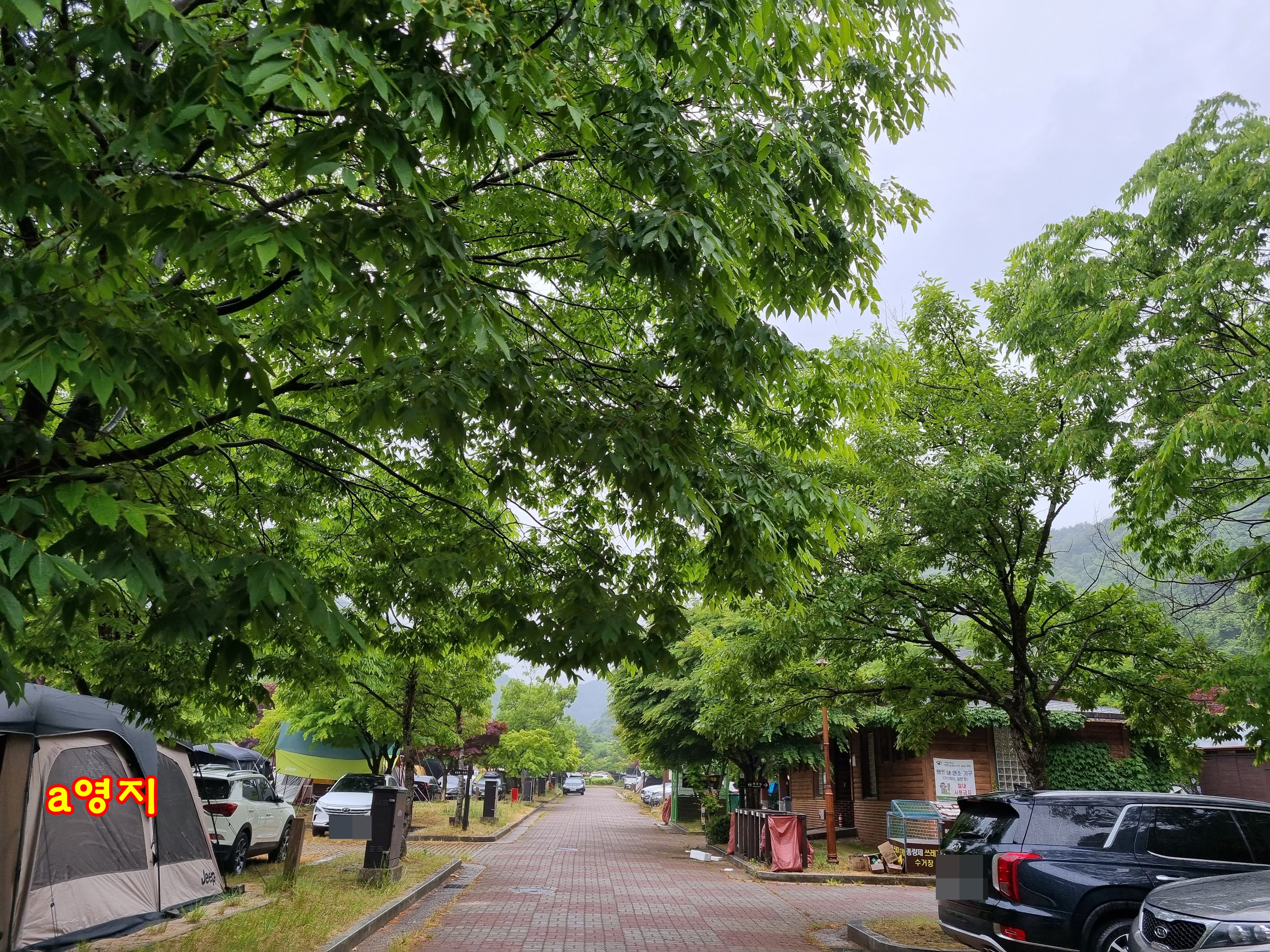 B영지는 대다수 사이트들이 나무숲사이에 위치하여 여름철 성수기에 특히 인기가 있을곳 들입니다. B영지가 시작되는 길가에 구역들도 사진처럼 숲사이에 자리하기 때문에 여름나기로는 제격이죠.