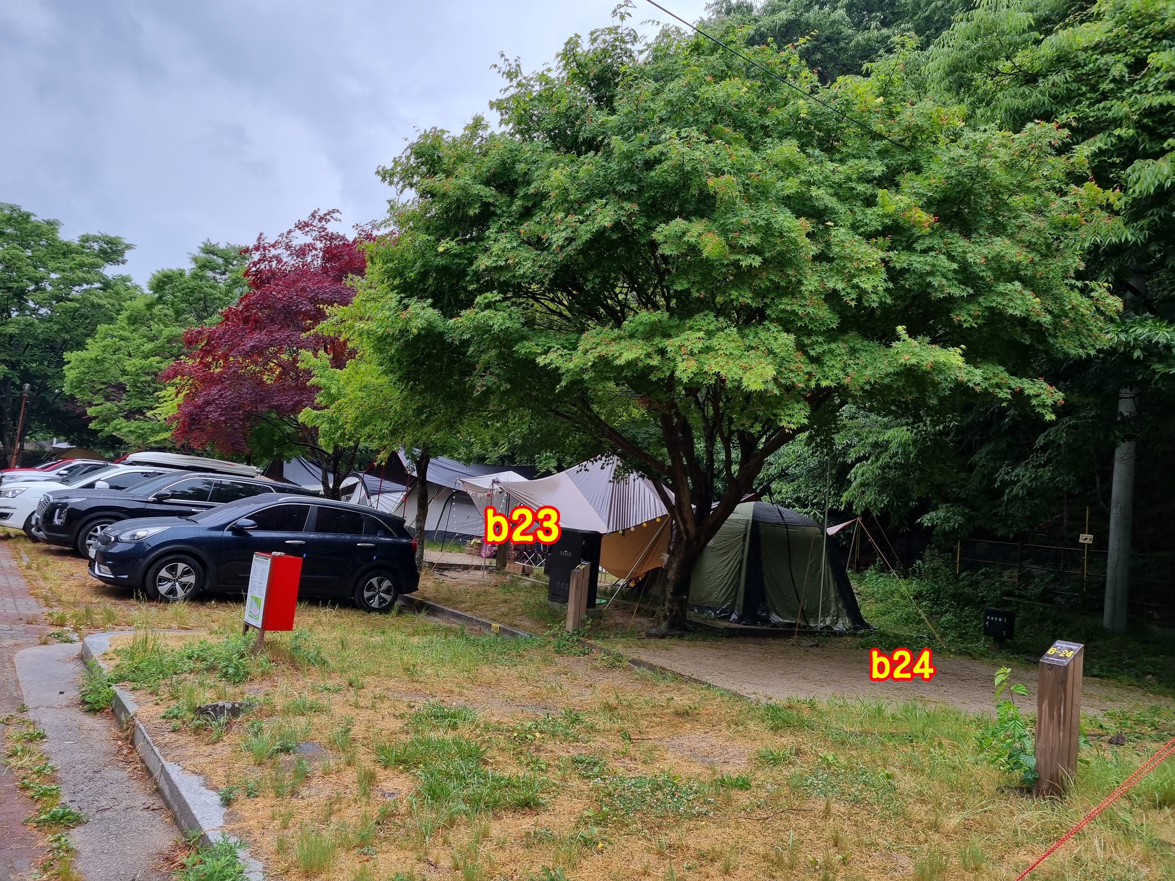 산아래 위치한 B영지의 B23,B24 번 사이트인데요, 나란히 위치해있기는 하지만 크기가 크고 그늘이 너무 좋습니다.
