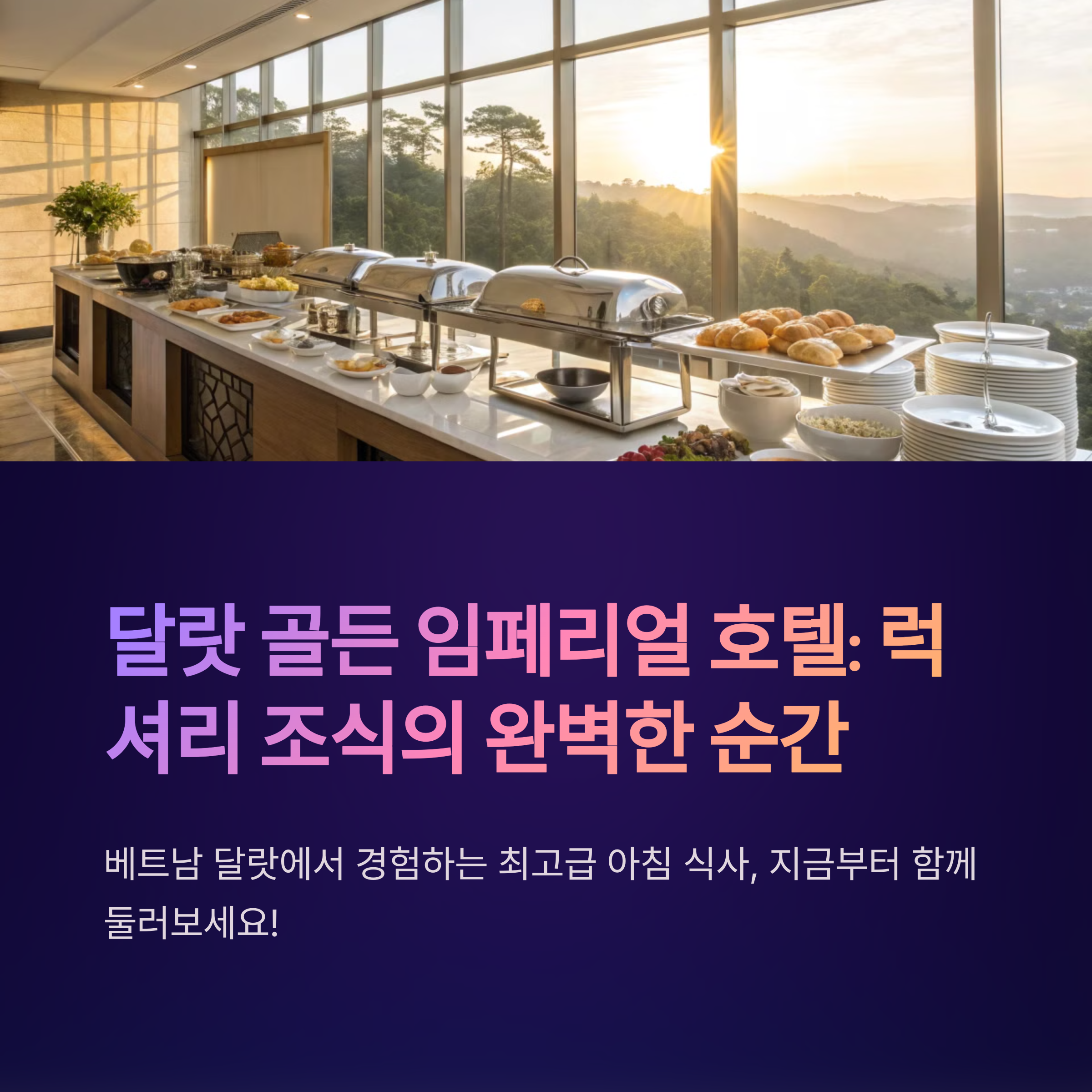 달랏의 골든 임페리얼 호텔은 그야말로 럭셔리한 아침을 즐길 수 있는 완벽한 장소입니다. 다양한 요리와 고급스러운 서비스, 그리고 편안한 분위기 덕분에 특별한 아침을 맞이하고 싶은 여행자들에게 추천할 만한 장소입니다. 이곳에서의 아침은 여행의 첫 순간을 더욱 특별하게 만들어줍니다.