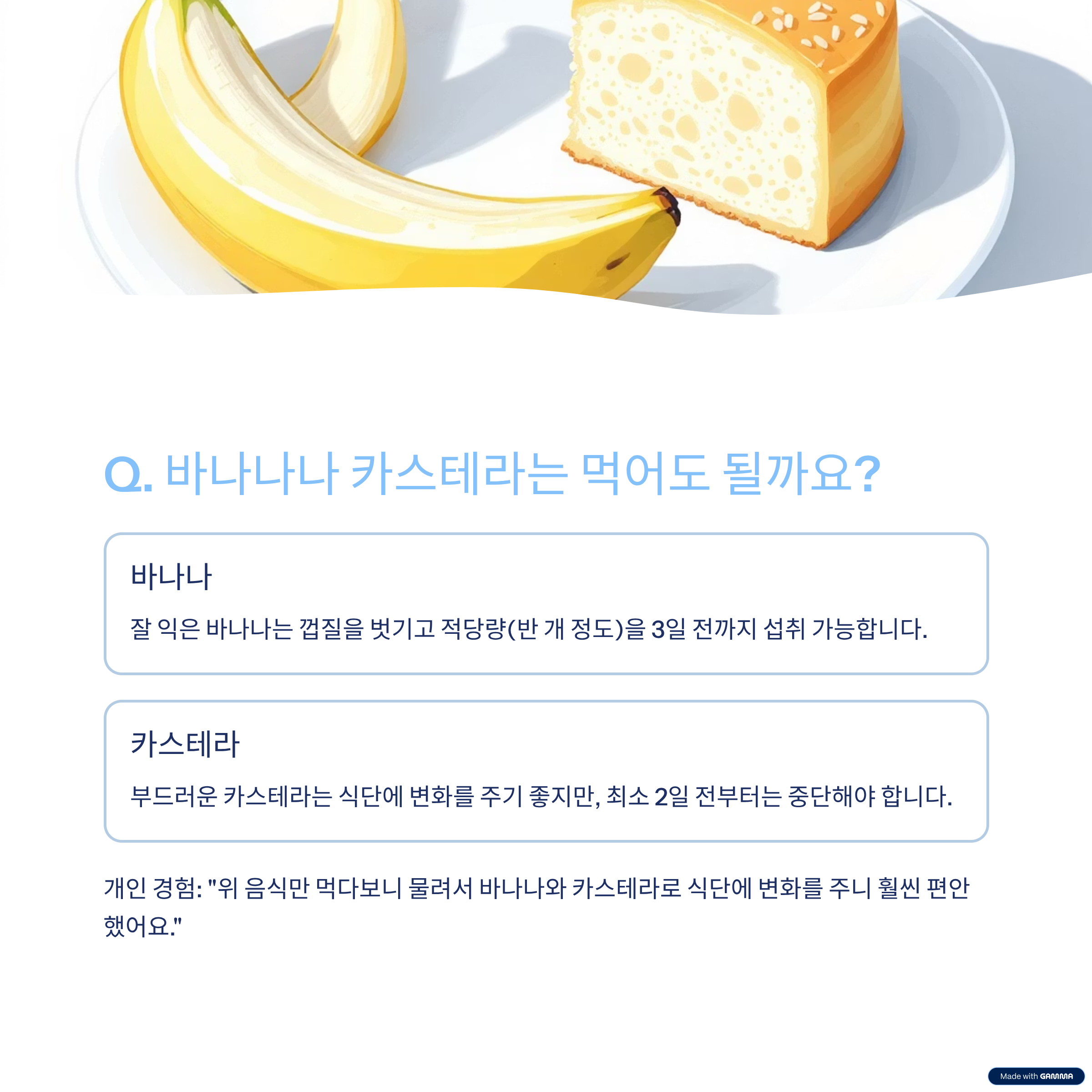 훨씬 편안하더라구요, 하지만 카스테라는 최소 2일전부터는 먹지 않는게 좋습니다.