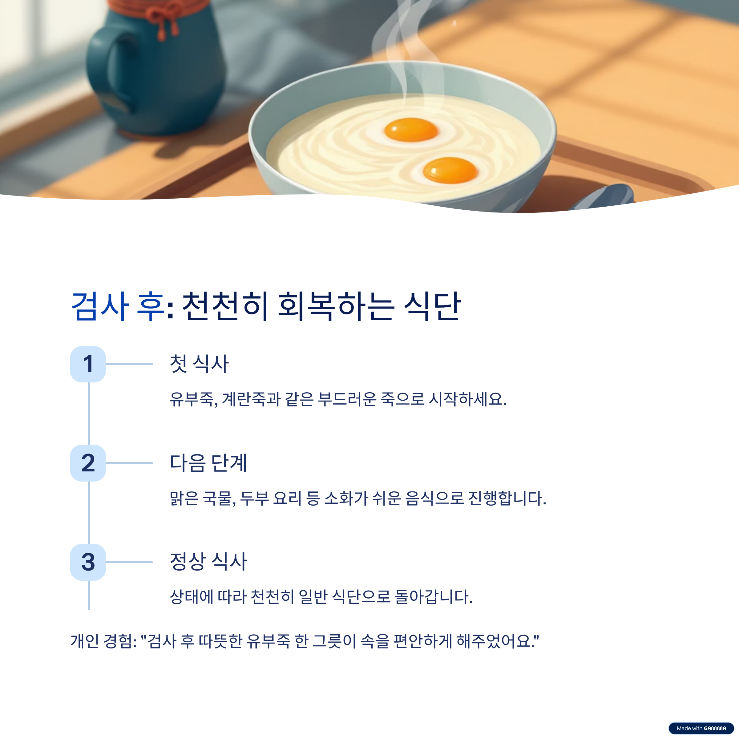 저도 검사 후엔 따뜻한 유부죽 한 그릇으로 속을 달랬거든요.